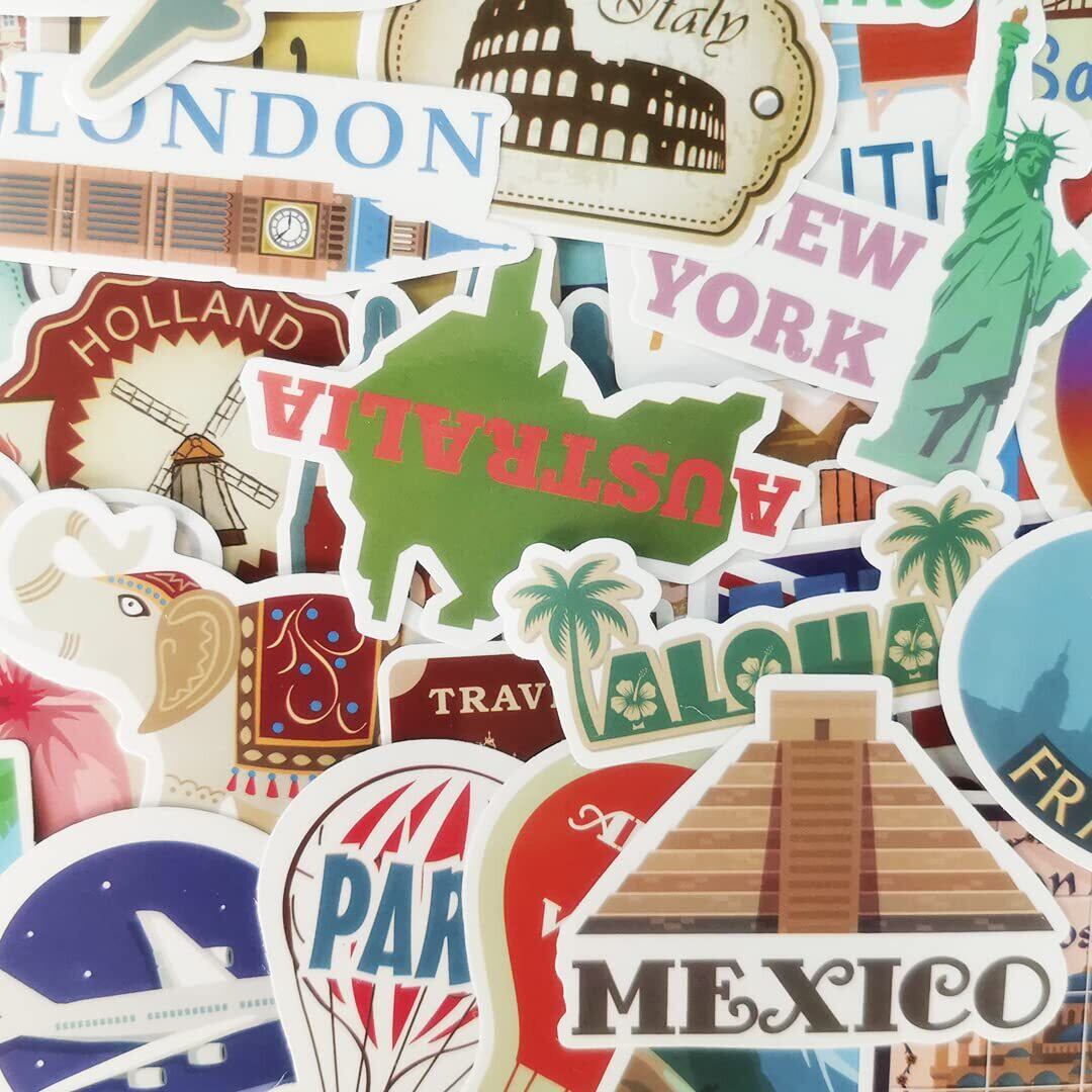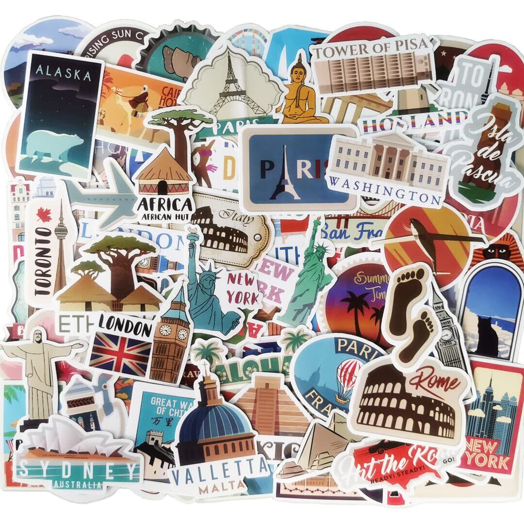 旅行都市ステッカーセット 100枚 トラベル防水ステッカーおしゃれ オシャレDIY ステッカー スーツケース、スノーボード、パソコン、携帯ノート、バイク、車、ギター ヘルメット 、スケボー、キャリーケース、手帳 文房具 ステッカー (t17)