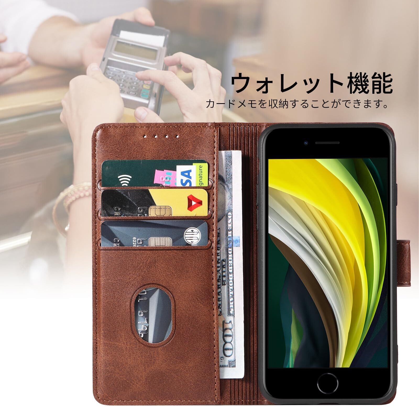 PinLiSheng iPhone SE ケース 手帳型 第2世代 第3世代 スマホケース iPhone 8 7 携帯カバー レザー 軽量 薄型 耐衝撃 耐摩擦 全面保護 マグネット式 カード収納 スタンド機能 4.7インチ対応(ブラウン, iPhone8 iPhone7 iPhone SE2 iPhone SE3)