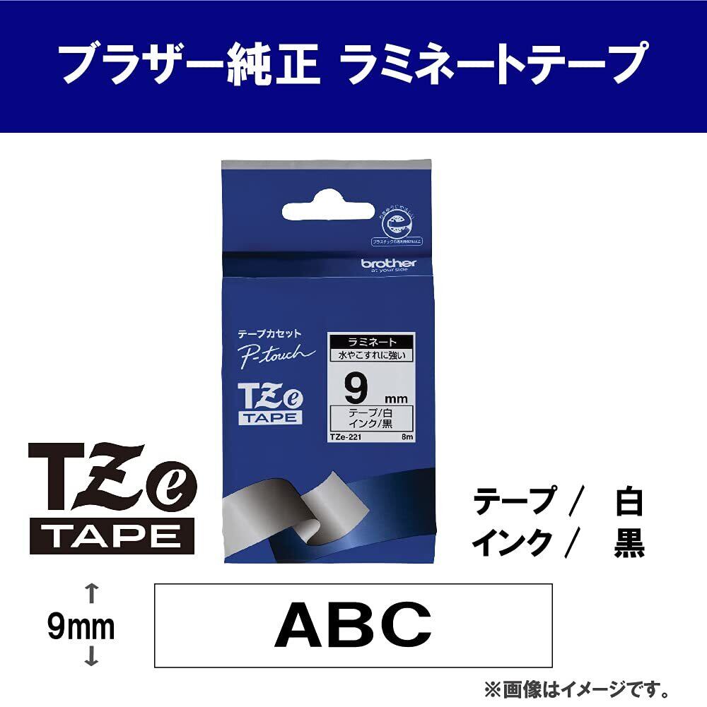 【brother純正】ピータッチ ラミネートテープ TZe-221 幅9mm (黒文字/白)