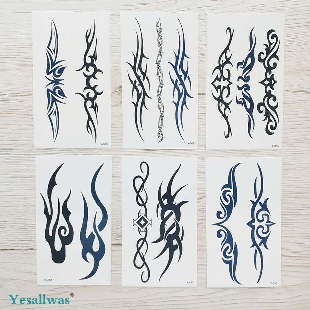 Yesallwas タトゥーシール トライバル 黒 青 鎖 有刺鉄線 腕輪 6枚セット タトゥーステッカー ボディーシール メンズ レディース 刺青シール 防水 Tribal tattoo sicker (トライバル)