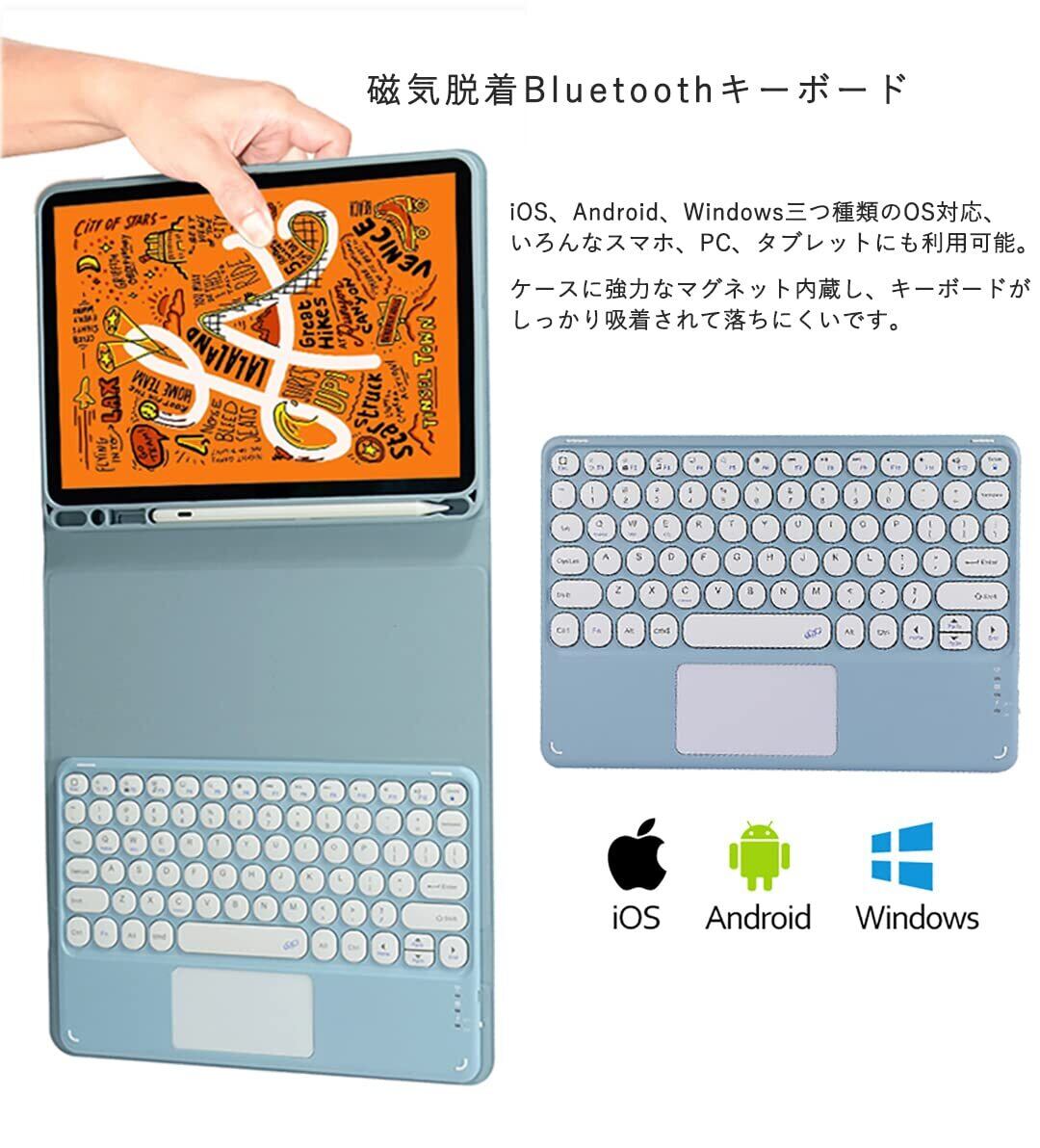 【分離式キーボード&タッチパッド搭載】キーボードとカバーはマグネット分離式で、それぞれ単独の利用できるので便利。Bluetoothキーボードにタッチパッド搭載、マウスの代わりに利用可能でiPadがノートパソコンのように使える、在宅勤務やオンライン授業などに便利です。