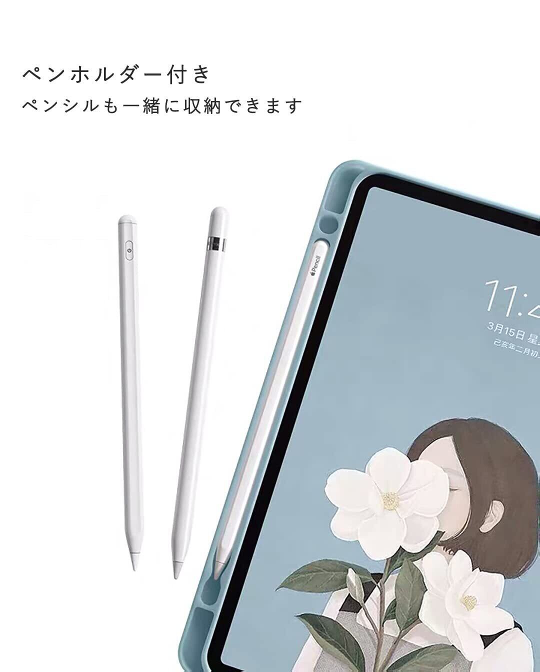 【ペンホルダー付き】Apple Pencilを収納するホルダー付きでアップルペンシルも一緒収納可能で紛失心配はありません(ペンは付属しません)