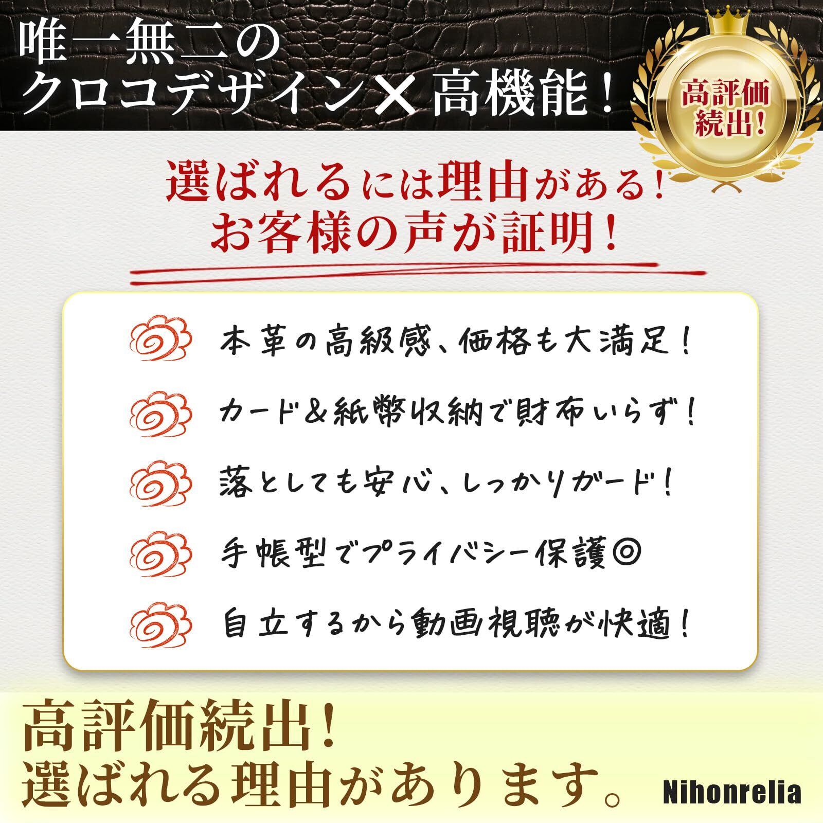 上質な素材と職人の技が織りなす、日本レリアの本革クロコダイル型押しスマホケース。