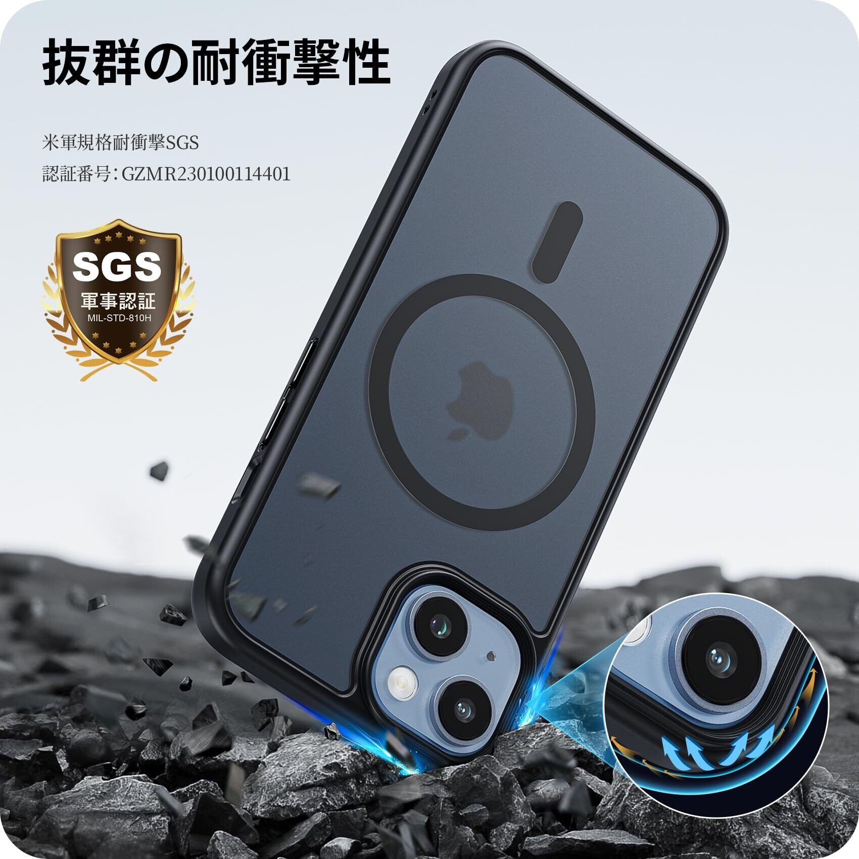 NIMASO MagSafe対応 iPhone14 / 13 用 ケース 半透明 カバー 米軍MIL規格取得 マグネット搭載 耐衝撃 マグセーフ ワイヤレス充電対応 スマホケース NSC23B638