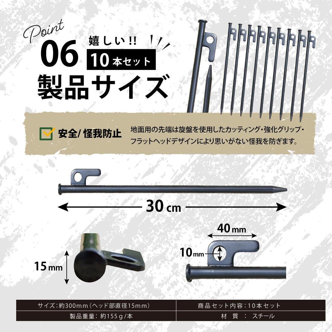 ペグ 30cm 10本セット 高張力鋼製 テント用ペグ キャンプ設営用具