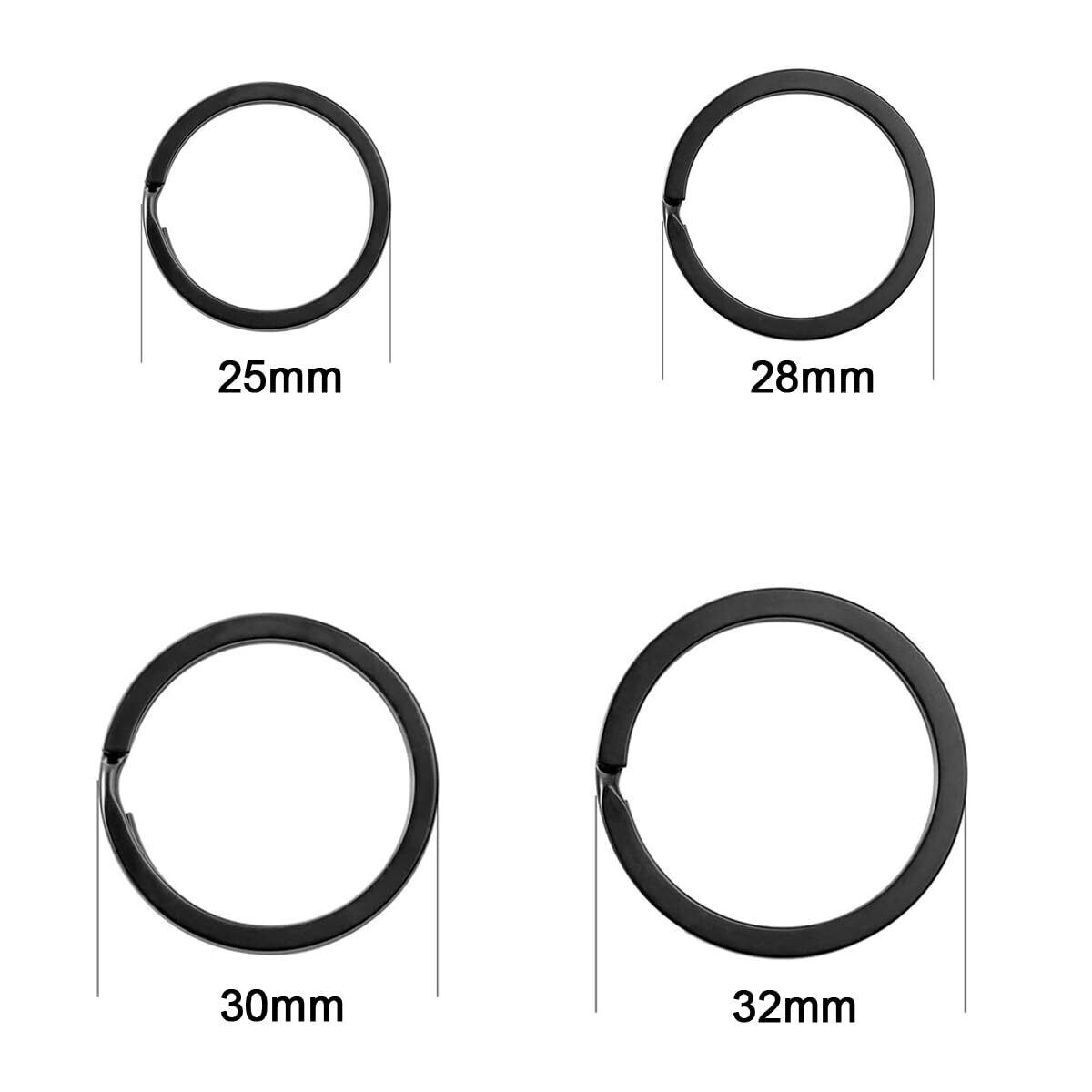 [AMUU] 平キーリング 黒い 外径25mm 28mm 30mm 32mm 40個入(各サイズ10) キーリング リング ステンレスキーホルダー リングキーホルダー・キーリング キーホルダー 金具 黒い