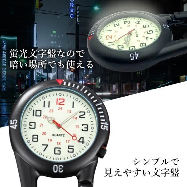 ・登山用や医師、看護師などにぴったりのカラビナウォッチです。 ・文字盤がシンプルで見やすくなっています。 ・よくあるベルトにカラビナがついているものとは違いカラビナと一体型になっています。 ・蛍光文字盤なので暗い場所でも使用できます。 【商品仕様】 カラー ブラック 素材 ステンレス鋼 合金