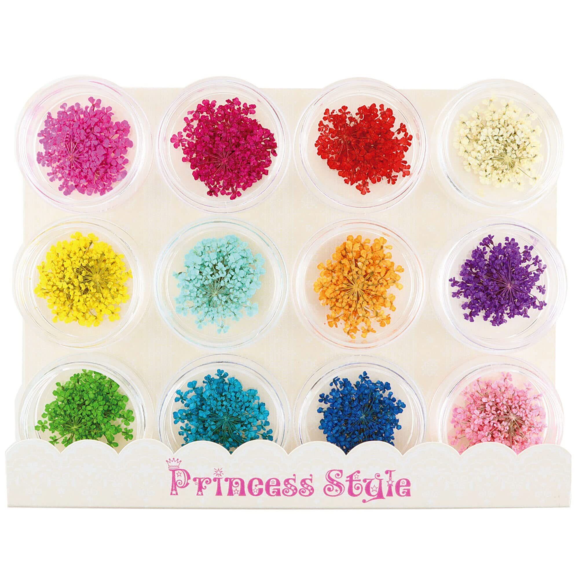 Princess-style ドライフラワー レース 押し花 ネイル パーツ レジン 封入 60枚ケース入り 12色×各5枚