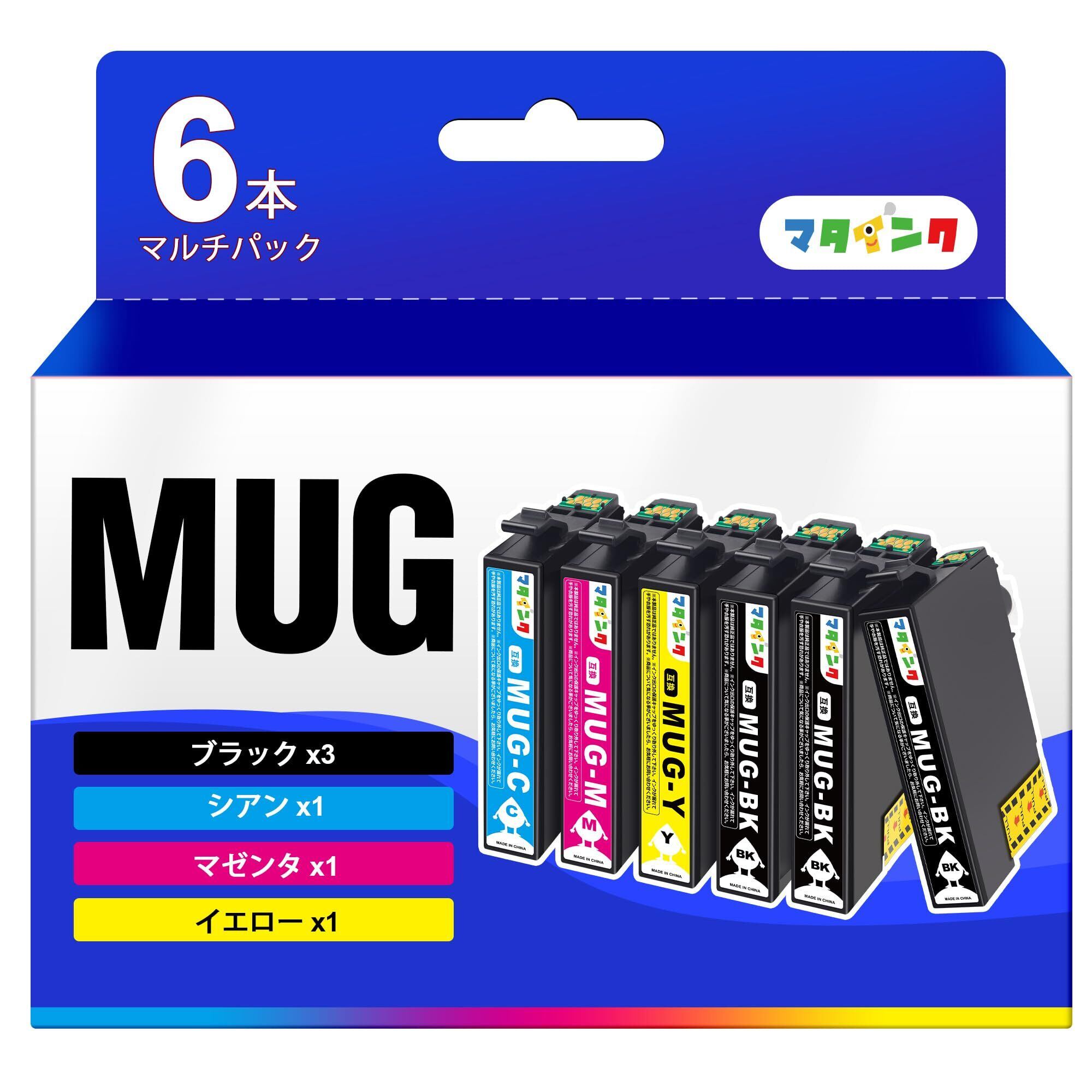 【在庫処分】マタインク エプソン用 インク マグカップ MUG-4CL EPSON対応 MUG マグカップ 4色セット + MUG-BK *2 合計6本セット エプソン用 EW-452A EW-052A インク 大容量タイプ 452A 052A 互換インク | gsmshop
