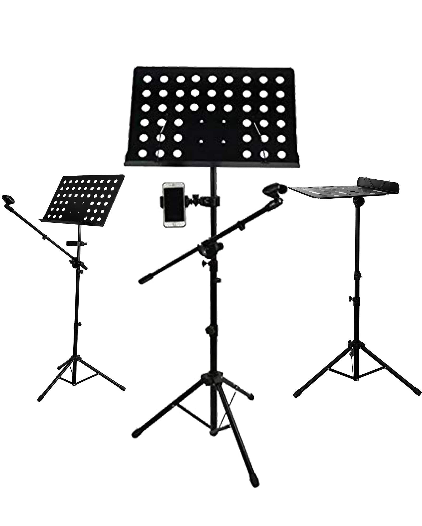 譜面台、マイクスタンド、携帯電話スタンドの機能を備えたスリーインワン譜面台。 携帯電話でのプレイ、歌、ライブが簡単