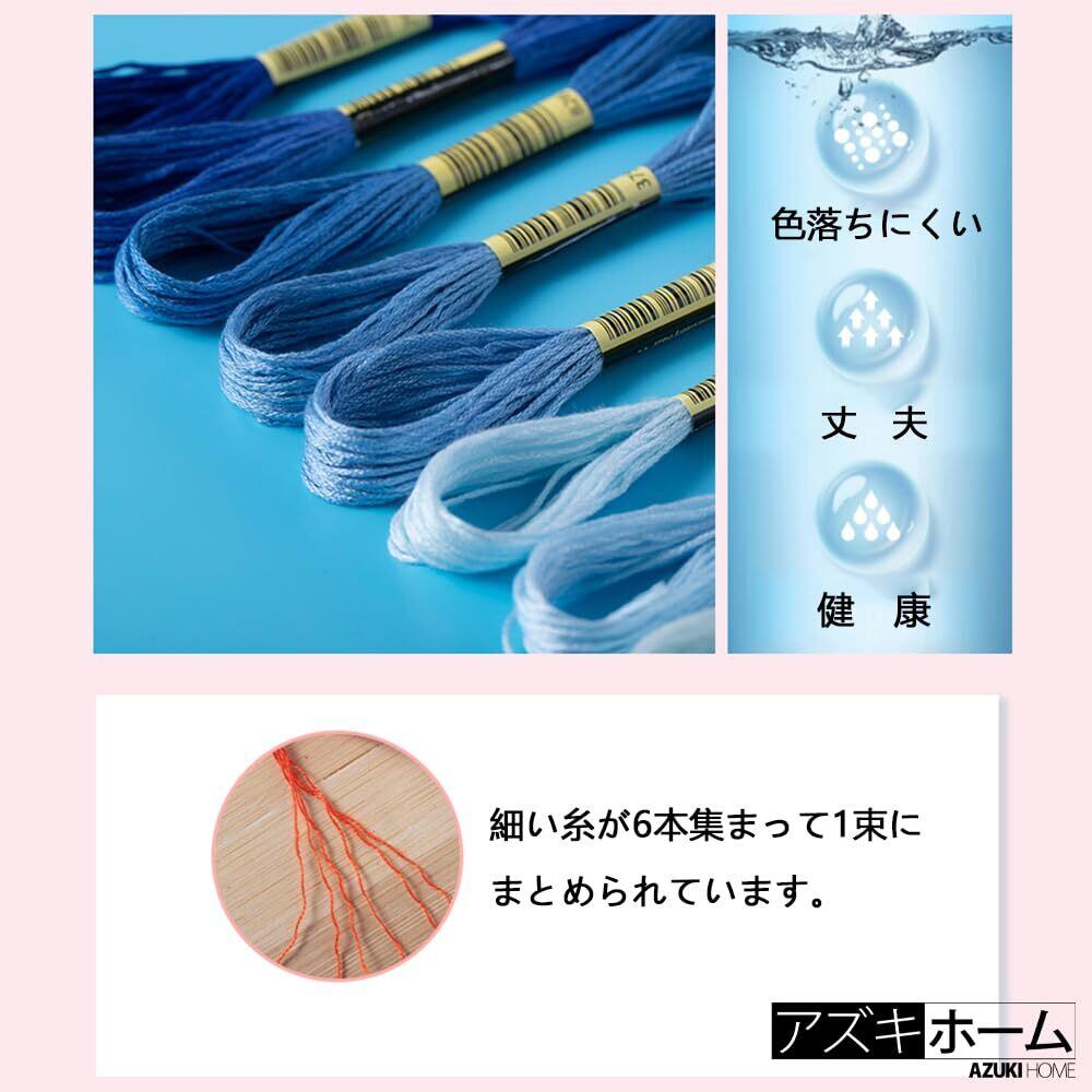アズキホーム 刺繍糸 初心者向け カラフル 縫い糸 手芸用糸 刺しゅう糸 クロスステッチ 8m 専用ハサミ付き (50色セット)