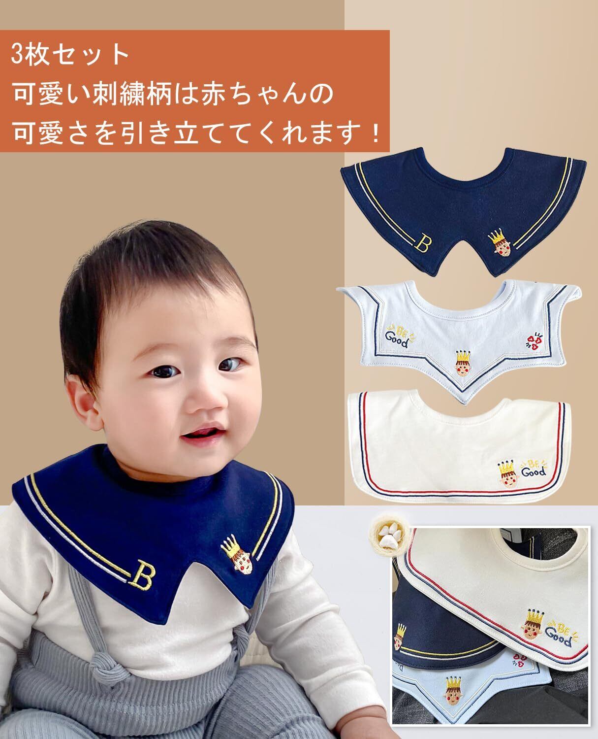 [Hapipana] 防水スタイ よだれかけ 刺繍柄付き ベビー ビブ 赤ちゃん 綿100% 360度回転 柔らかい 保育園用 出産のお祝いギフト