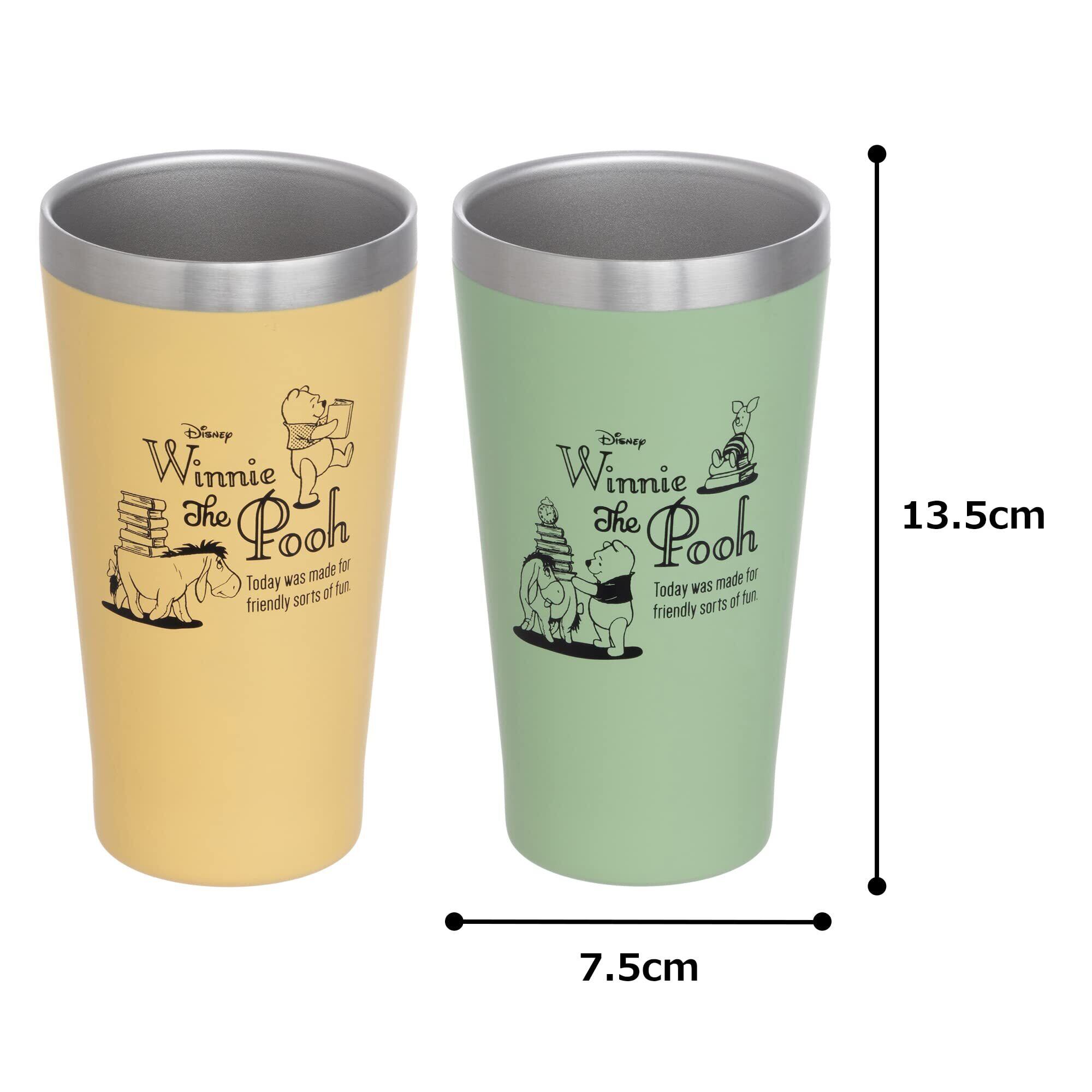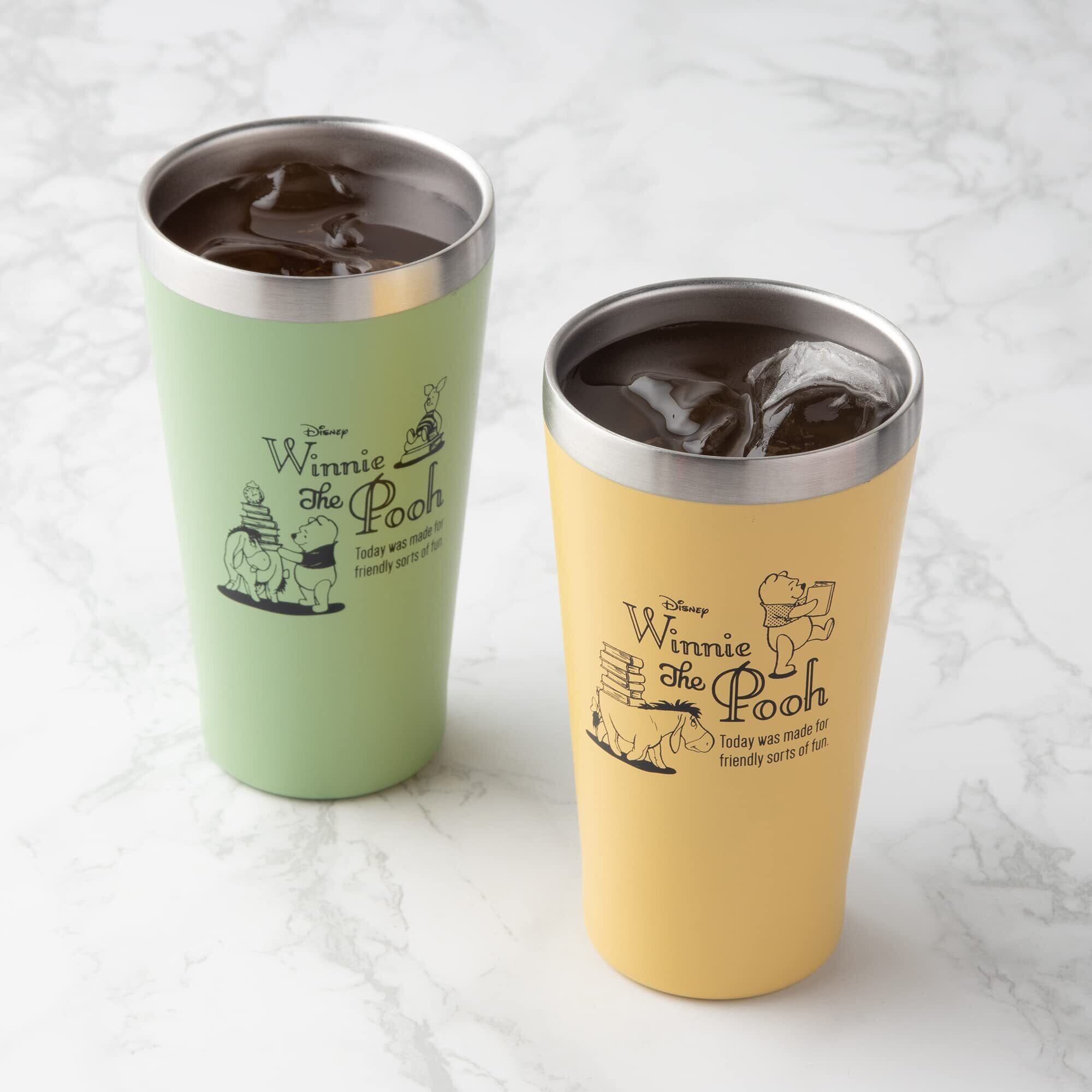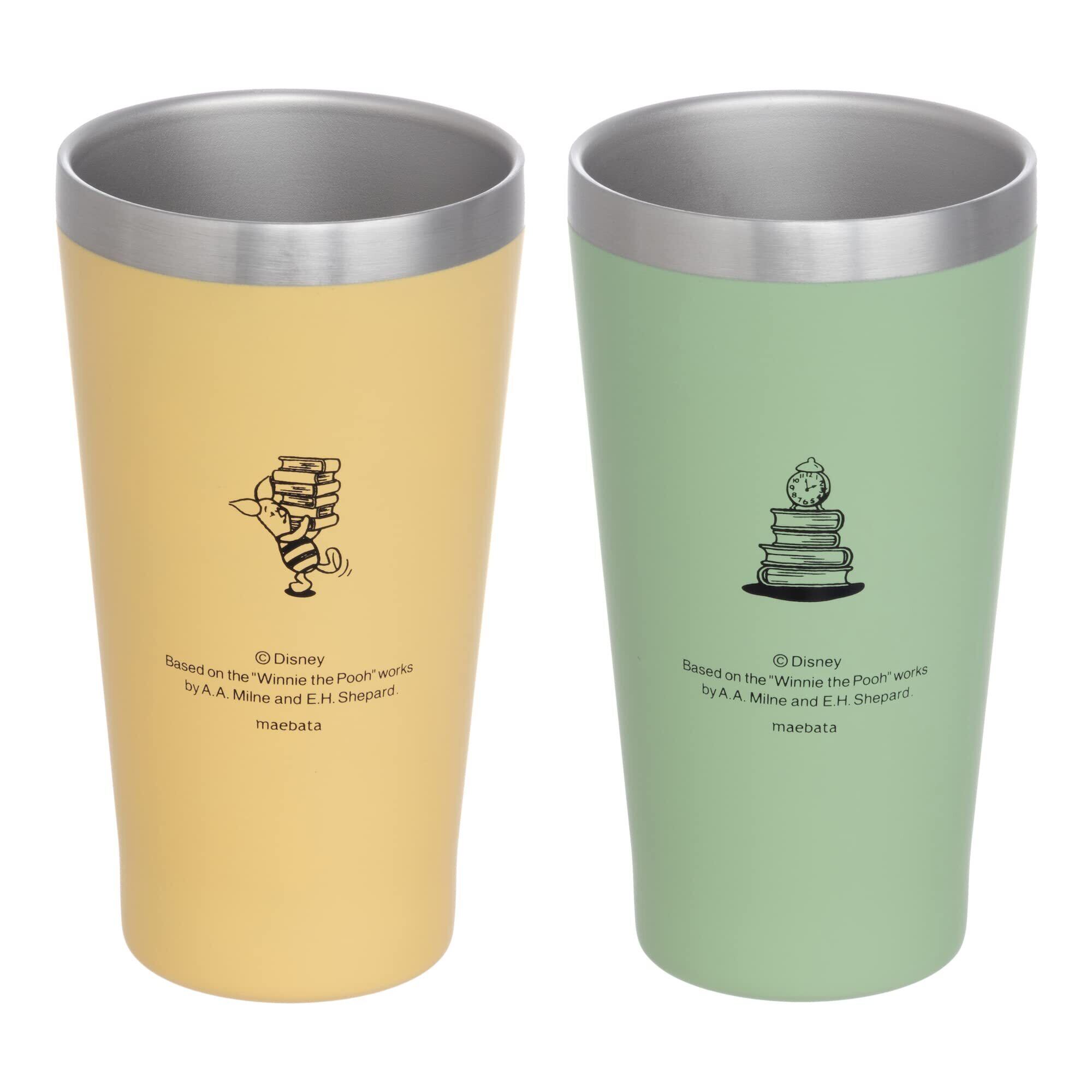 maebata ディズニー くまのプーさん ペア タンブラー 2個セット 箱入 保温 保冷 真空断熱 サーモステンレス イエロー&グリーン 51776