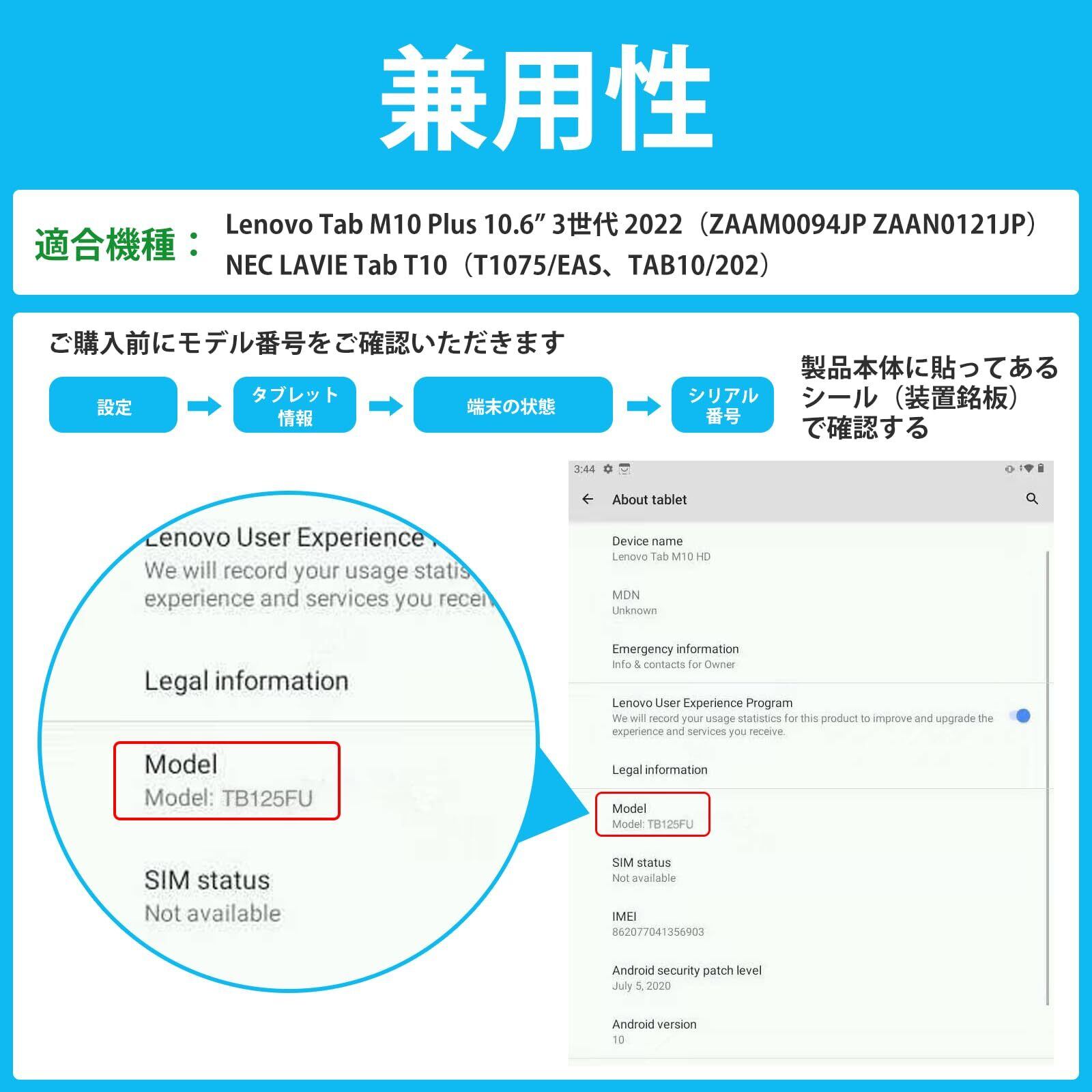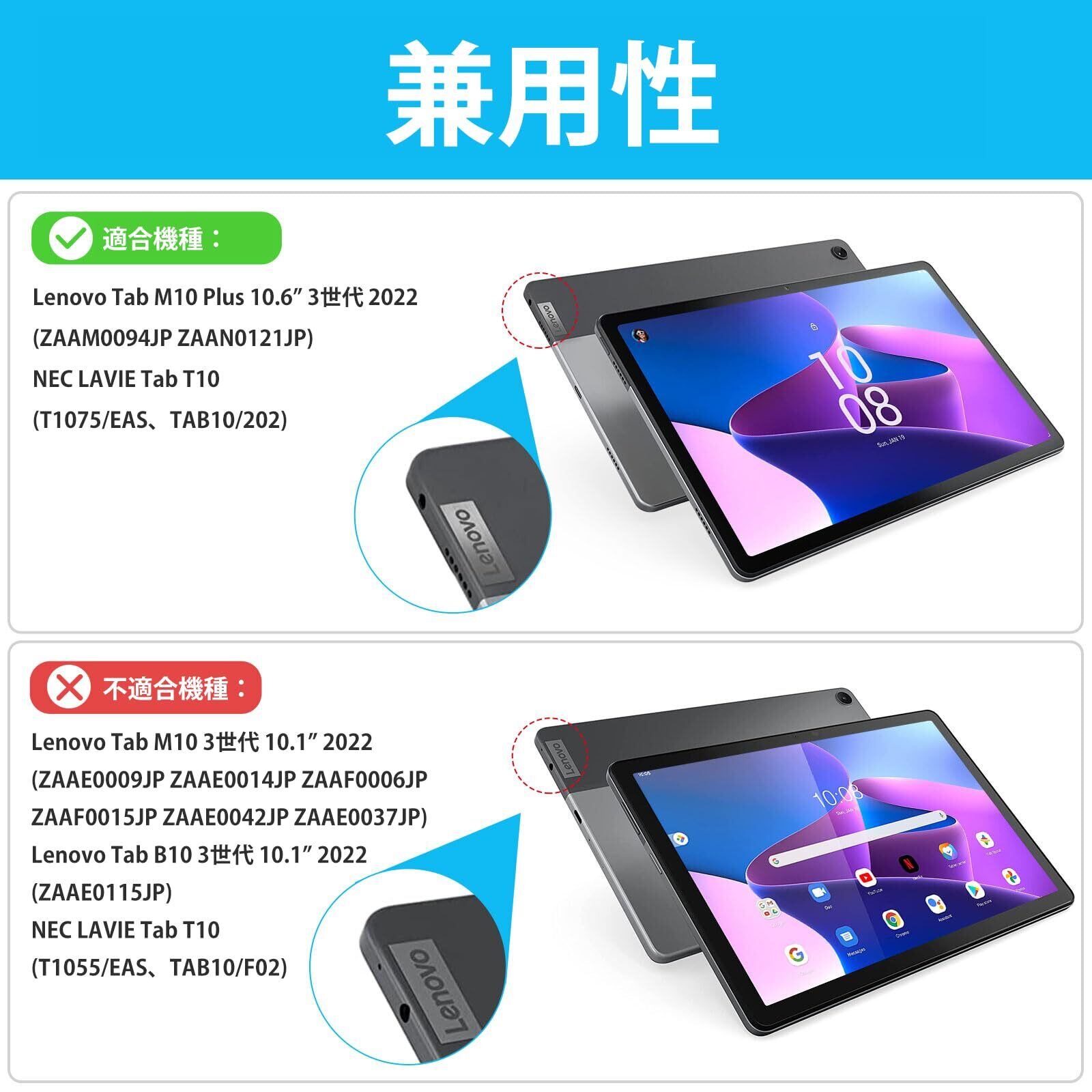 対応モデル:Lenovo Tab M10 Plus 10.6インチ 2022発売(型番:ZAAM0094JP ZAAN0121JP)、NEC LAVIE Tab T10(T1075/EAS、TAB10/202)10.6 インチ、他のモデルには対応しません。ご購入前にモデル番号をご確認いただきます。