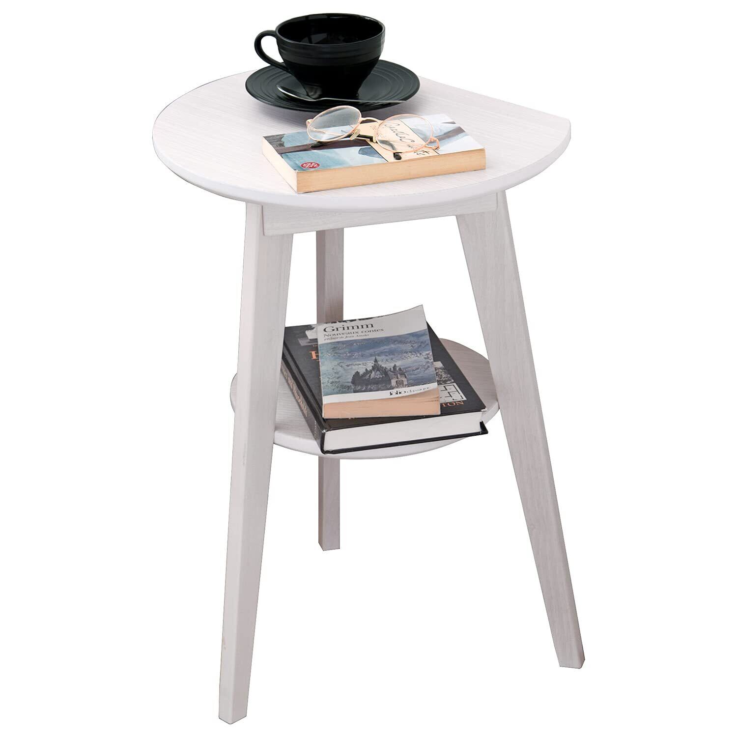 萩原(Hagihara) サイドテーブル 丸型 机 ナイトテーブル 【壁付けできる】 丸テーブル 天然木 ホワイト VT-7972WS
