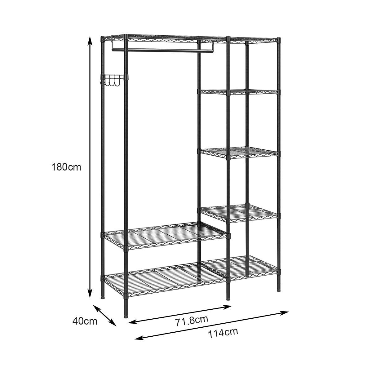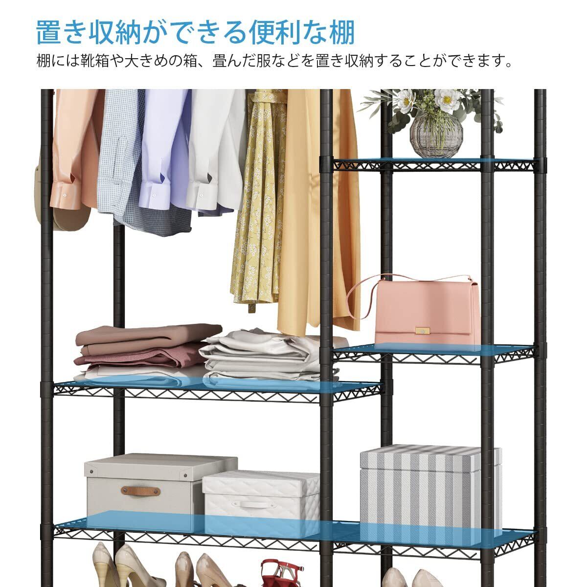 ワードローブ ハンガーラック コートハンガー 衣類収納 省スペース コート掛け 棚板高さ調節 大容量 棚付き ブラック 幅114×奥行40×高さ180cm