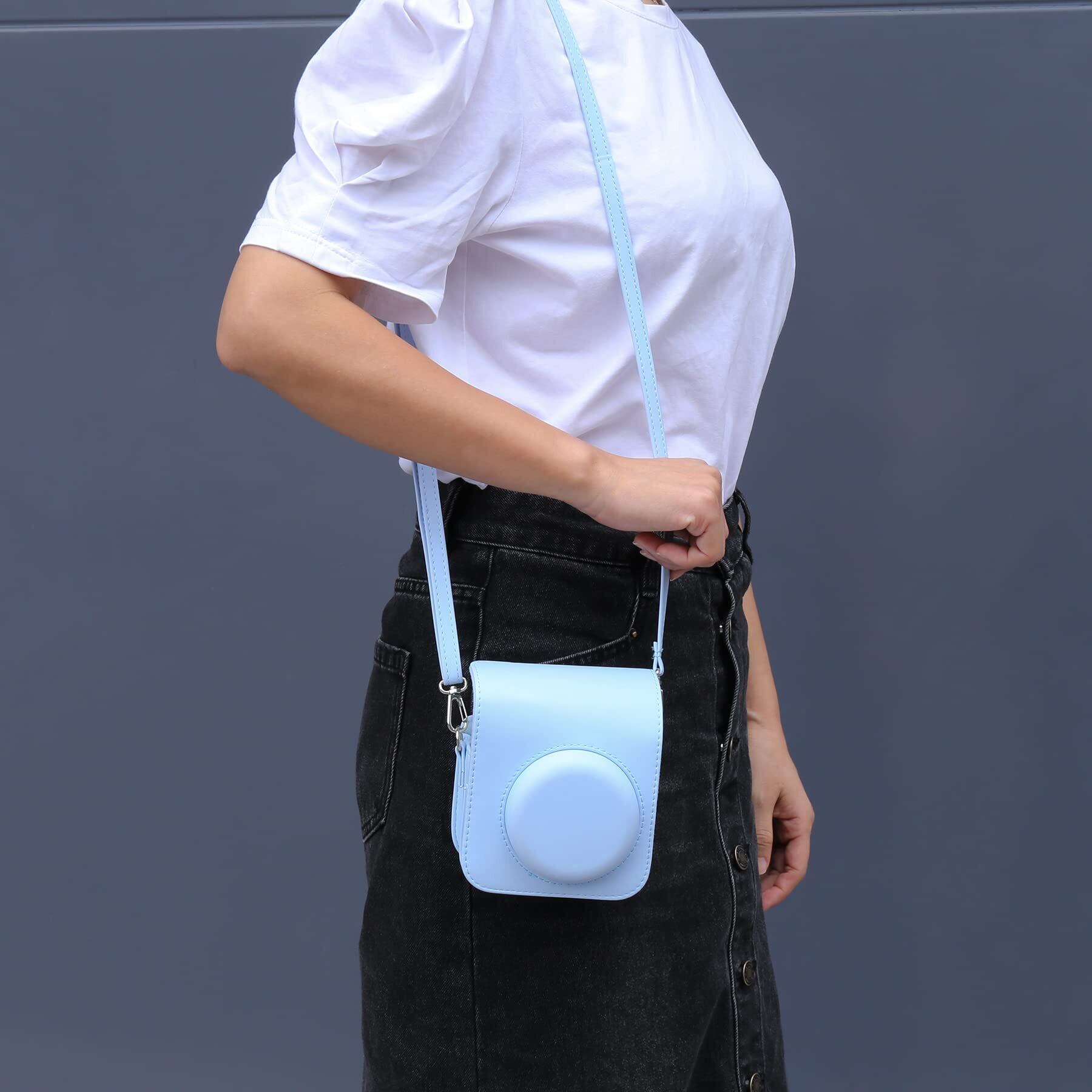 【Aenllosi 専用収納ケース】互換品 FUJIFILM チェキ instax mini 12 / 11 インスタントカメラ INS MINI 12 ショルダーストラップ付き パステルブルー(ケースのみ)