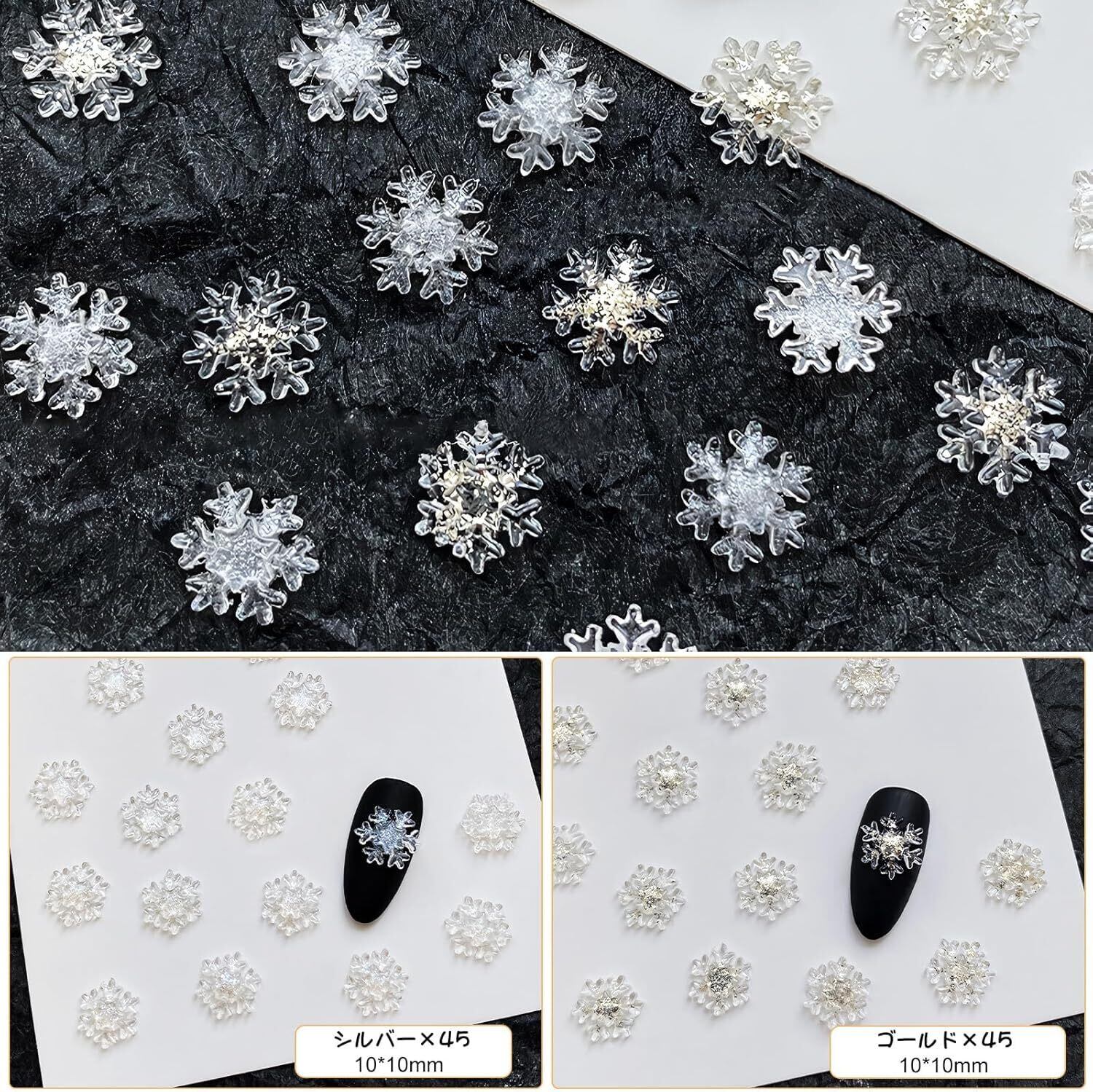 Chisafly ネイルパーツ 雪の結晶 雪 ネイルストーン 90点セット 冬 ゆき クリスマス 雪花 立体 透明 ふゆ クリア キラキラ 樹脂製 3d