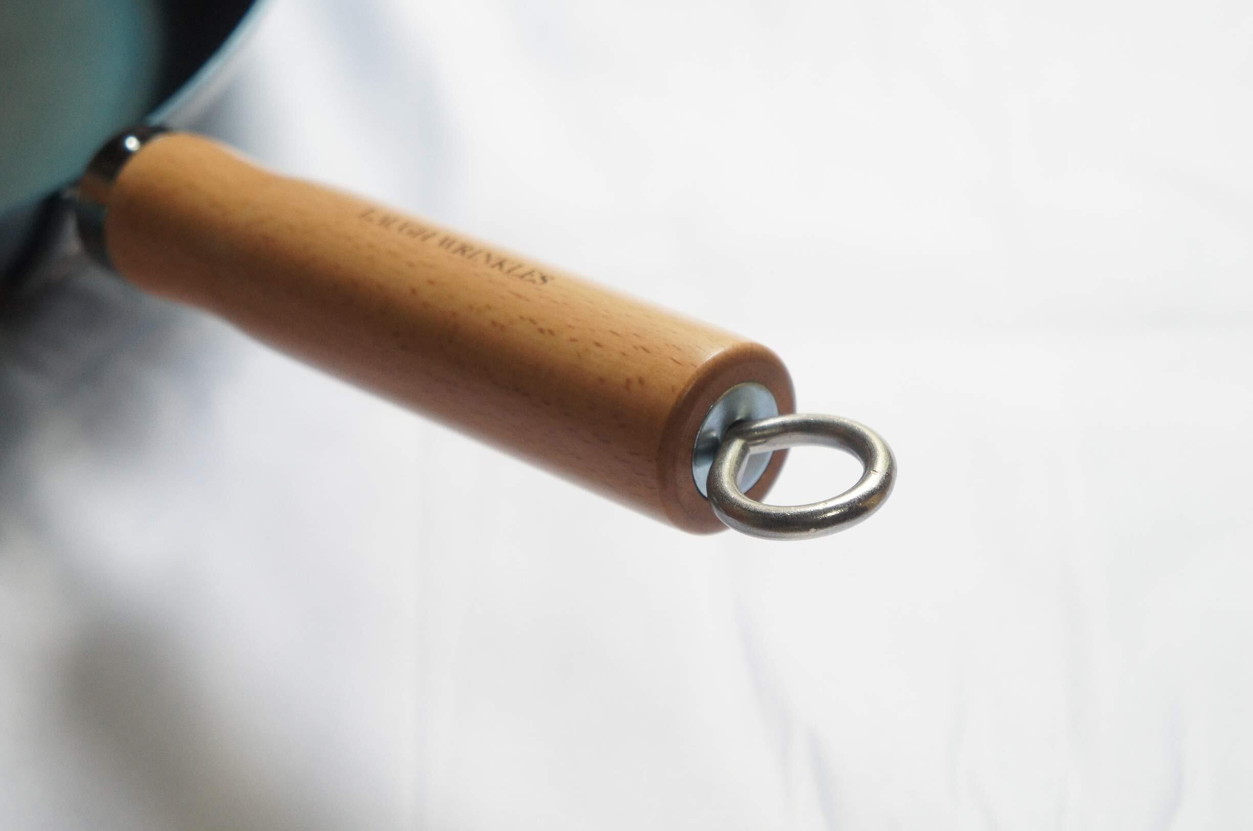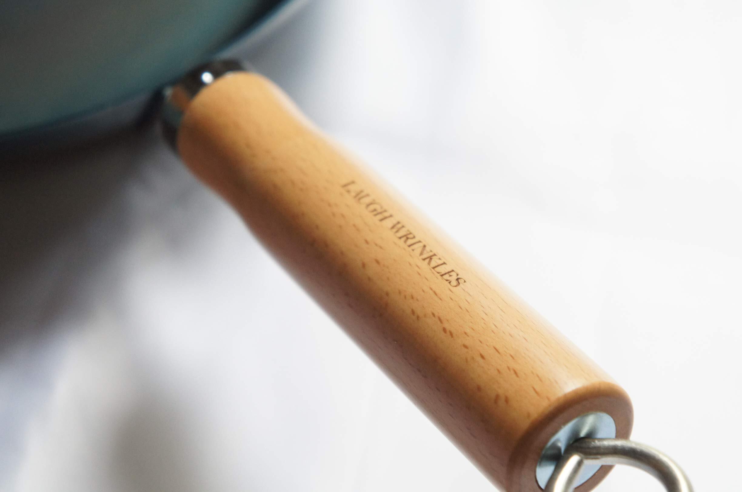 持ち手が熱くならないように白木ハンドルを採用