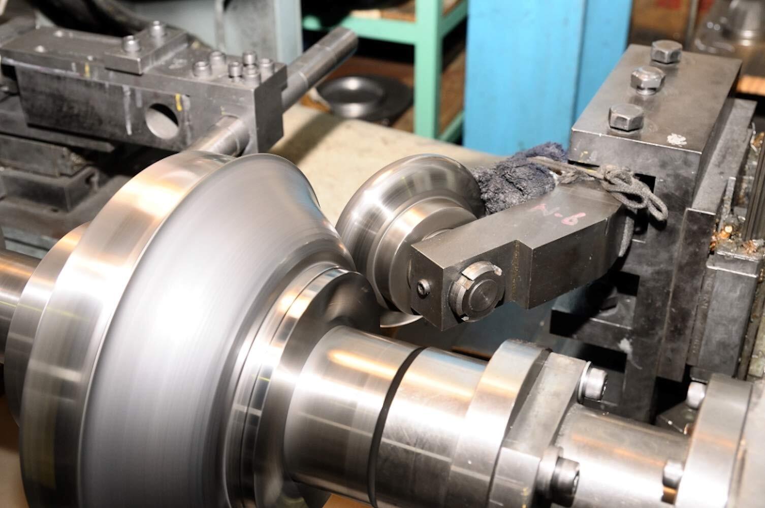 へら絞り加工で側面を薄く伸ばすことで軽量化