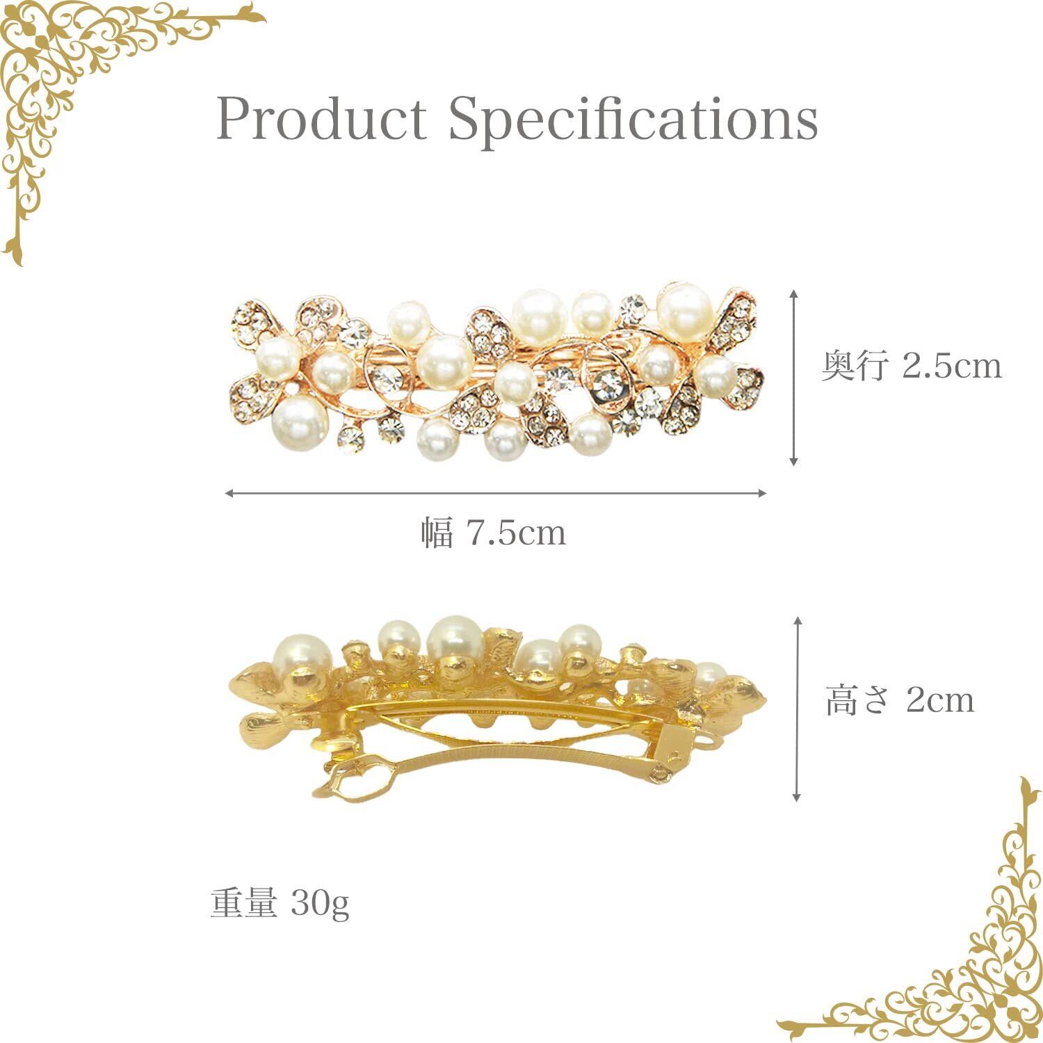 【商品仕様】商品内容:パールバレッタ1個。サイズ:幅7.5㎝、奥行き2.5㎝、高さ2㎝。重量30g。モニターなど環境により画像と若干見え方が違う場合がございます。