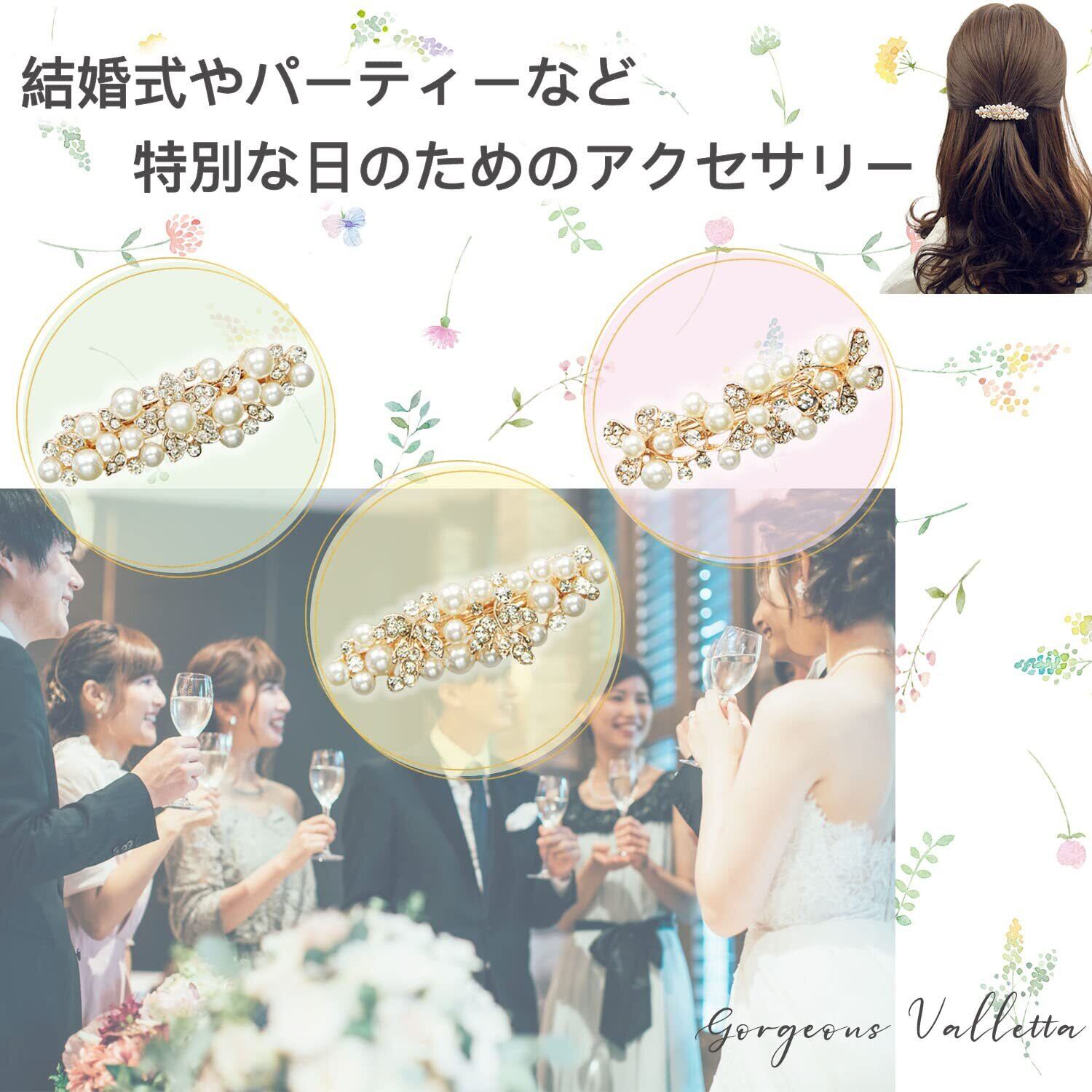 【特別な日に映える】「Shining Valletta」は、あなたの大切な瞬間をよりエレガントに彩ります。柔らかく温かみのあるパールと繊細な花模様が調和し、結婚式や記念日など、特別な日のヘアスタイルに特別な輝きを加えます。