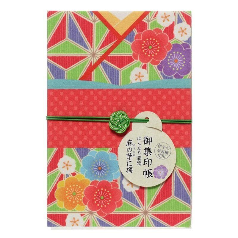 御朱印帳 集印帳 はんなり着物 麻の葉に梅 (あさのはにうめ) 160×109mm 蛇腹式 24折 M002-065