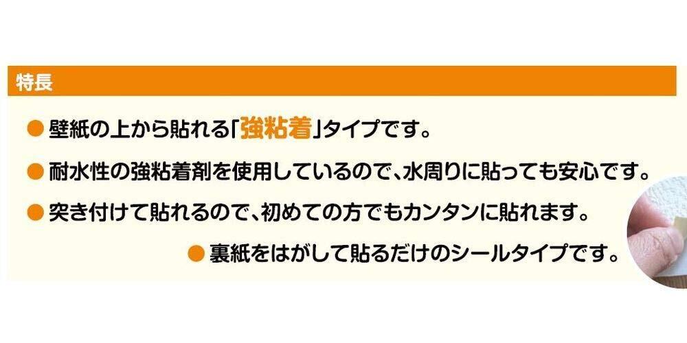 壁紙の破れや汚れをカンタンに補修できるちょっとサイズの壁紙です。 •壁紙の上から貼れる「強粘着」タイプです。