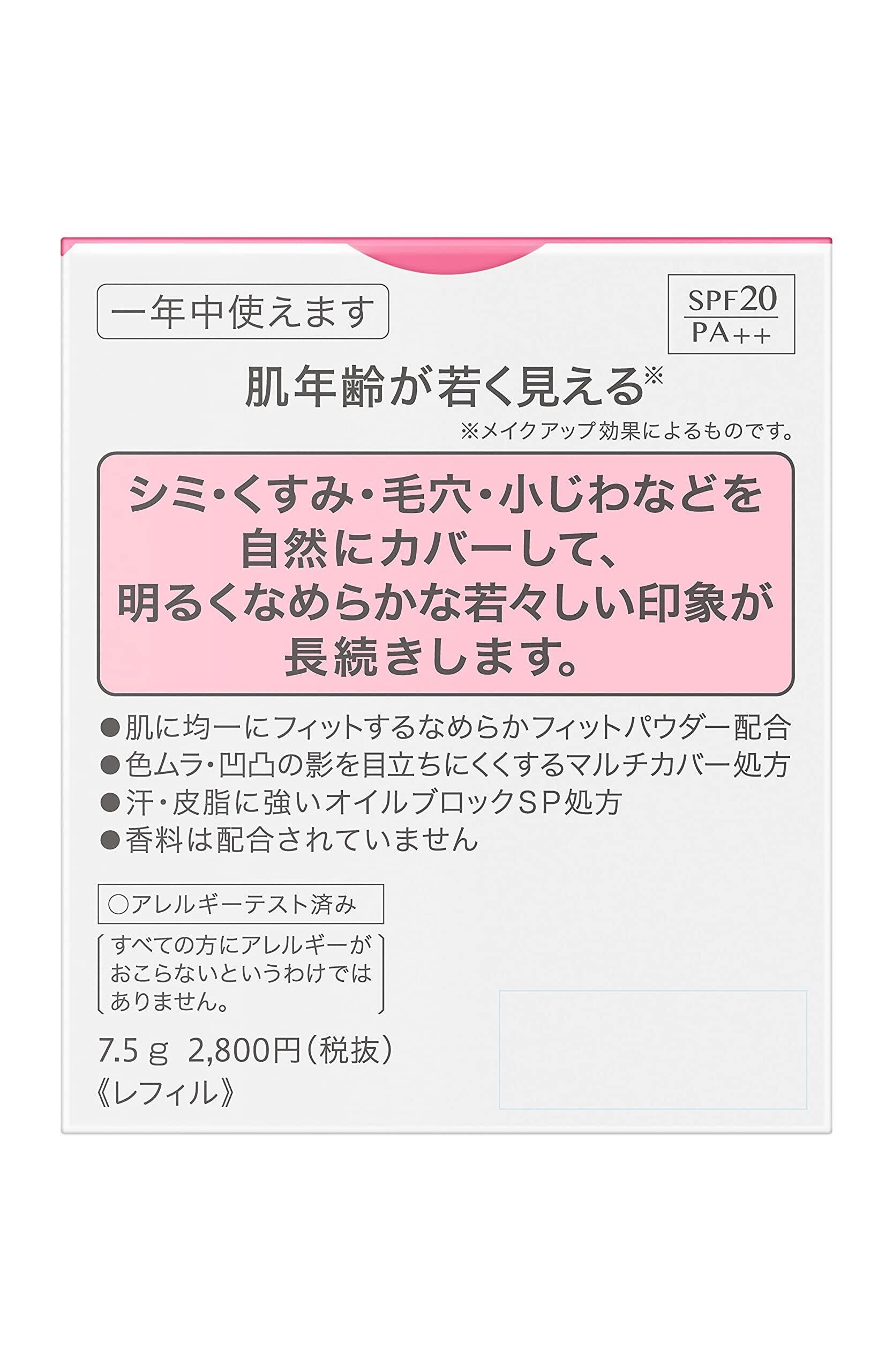 肌年齢が若く見える※。シミ・くすみ・毛穴・小じわなどを自然にカバーして、明るくなめらかな若々しい印象が長続きするパウダーファンデーション。SPF20PA++。スポンジ付。レフィル。※メイクアップ効果によるものです。