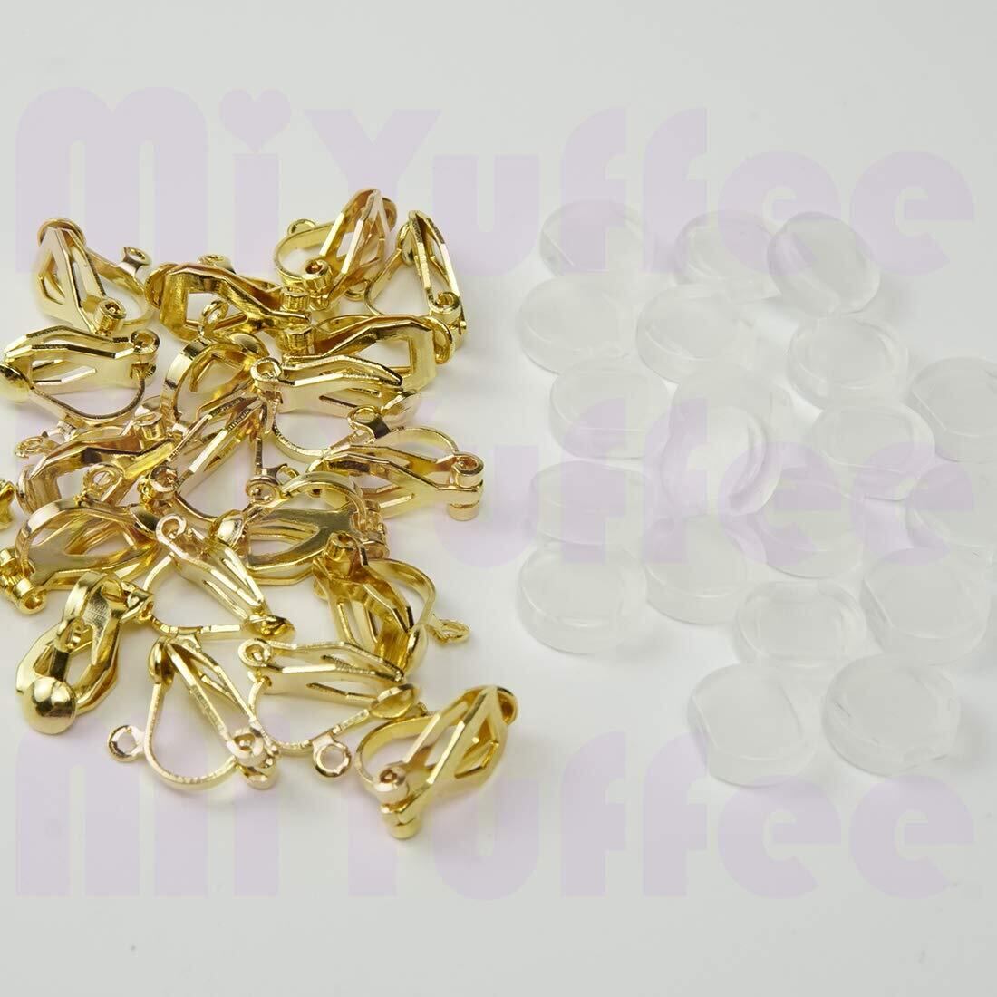 イヤリング パーツ クリップ式 ゴールド シルバー 2色 10ペア20個 シリコン カバー 付き アクセサリーパーツ ハンドメイド 手芸 金具 素材 (ゴールド)