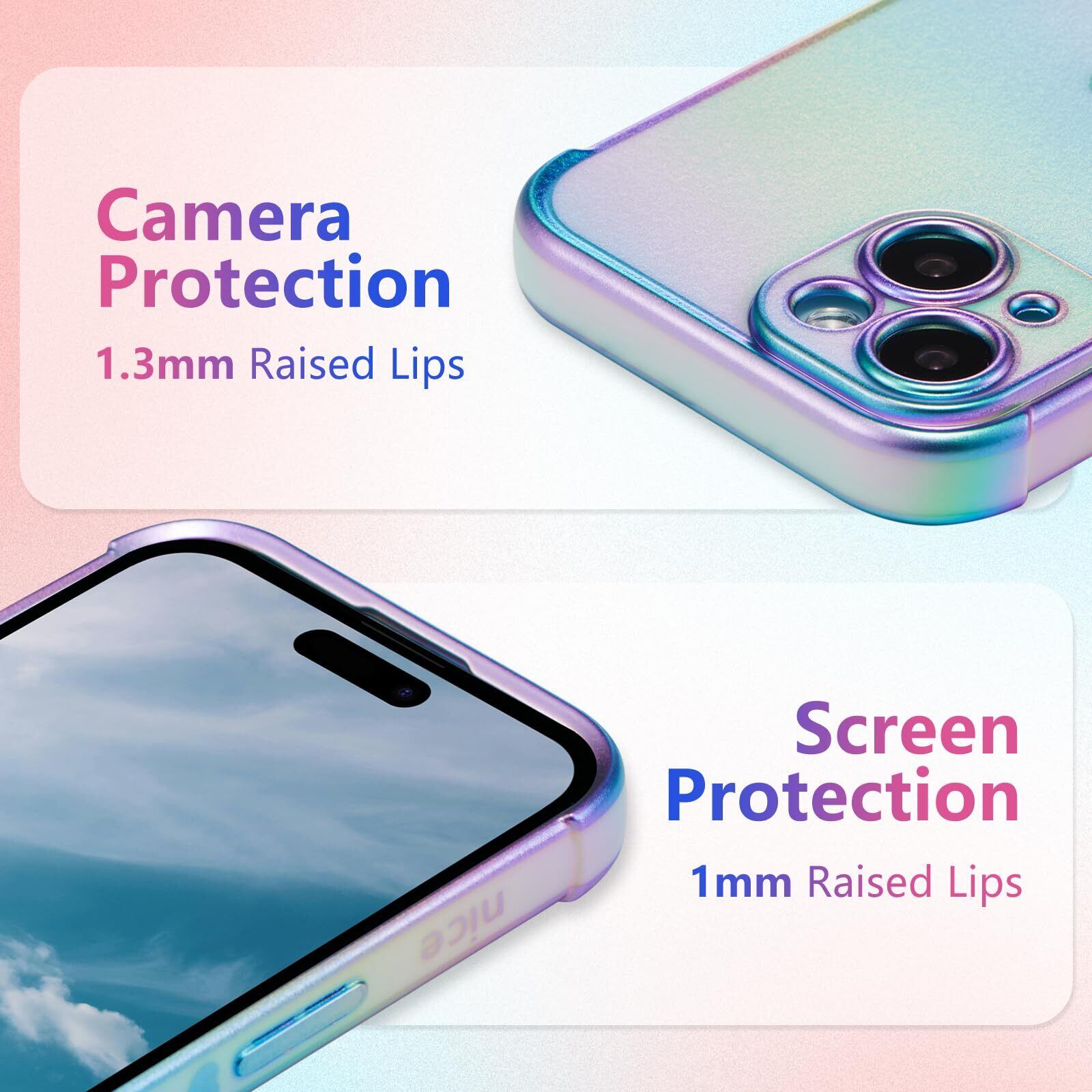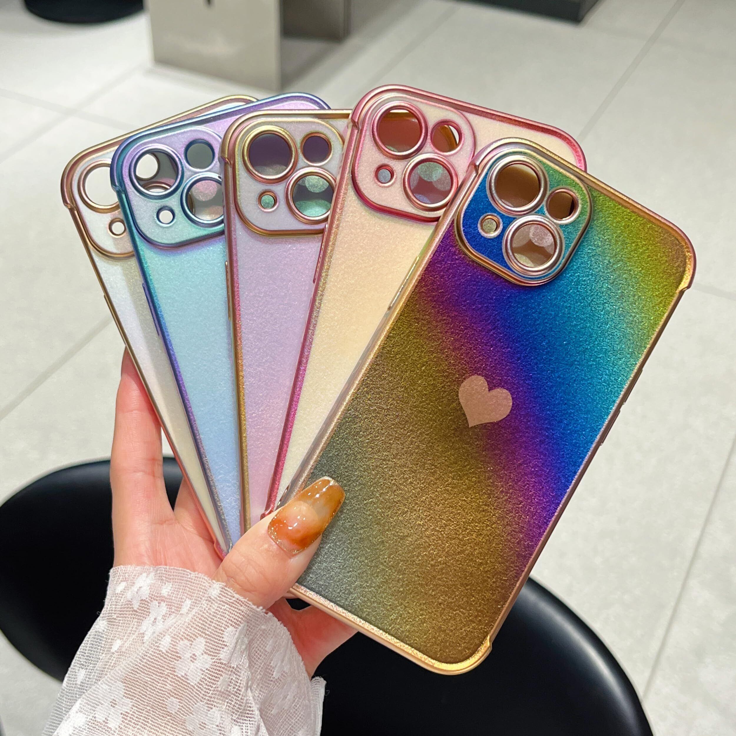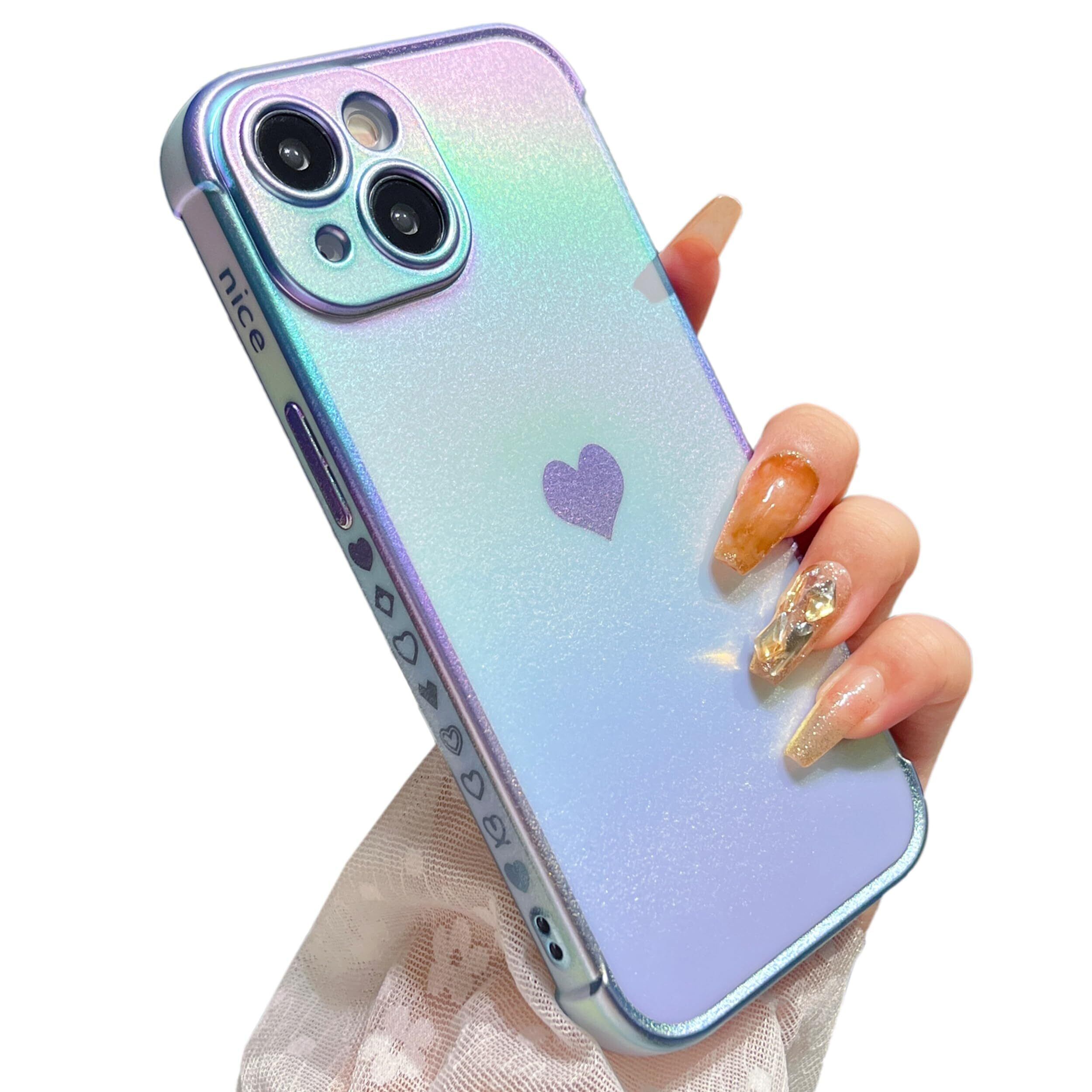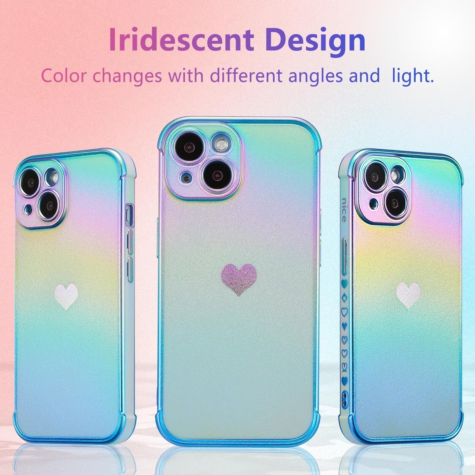 【虹色デザイン】電気メッキ技術により、縁と小さなラブハートパターンを装飾し、メッキされた縁は決して色褪せず、ケース全体が光沢があり、異なる動きや光によって色が変化します; すべてがこのiPhone 15ケースをよりスタイリッシュにし、目を引く;女の子と女性のための素敵な贈り物。