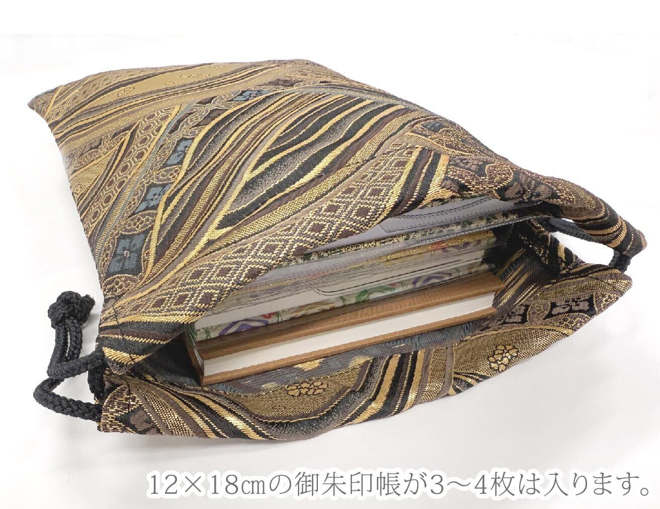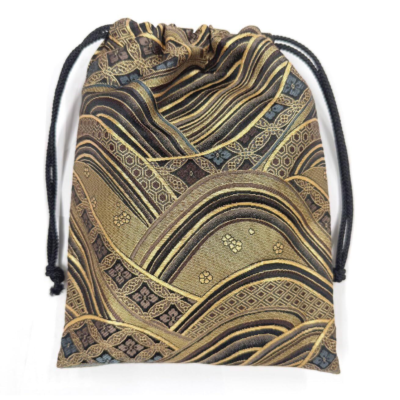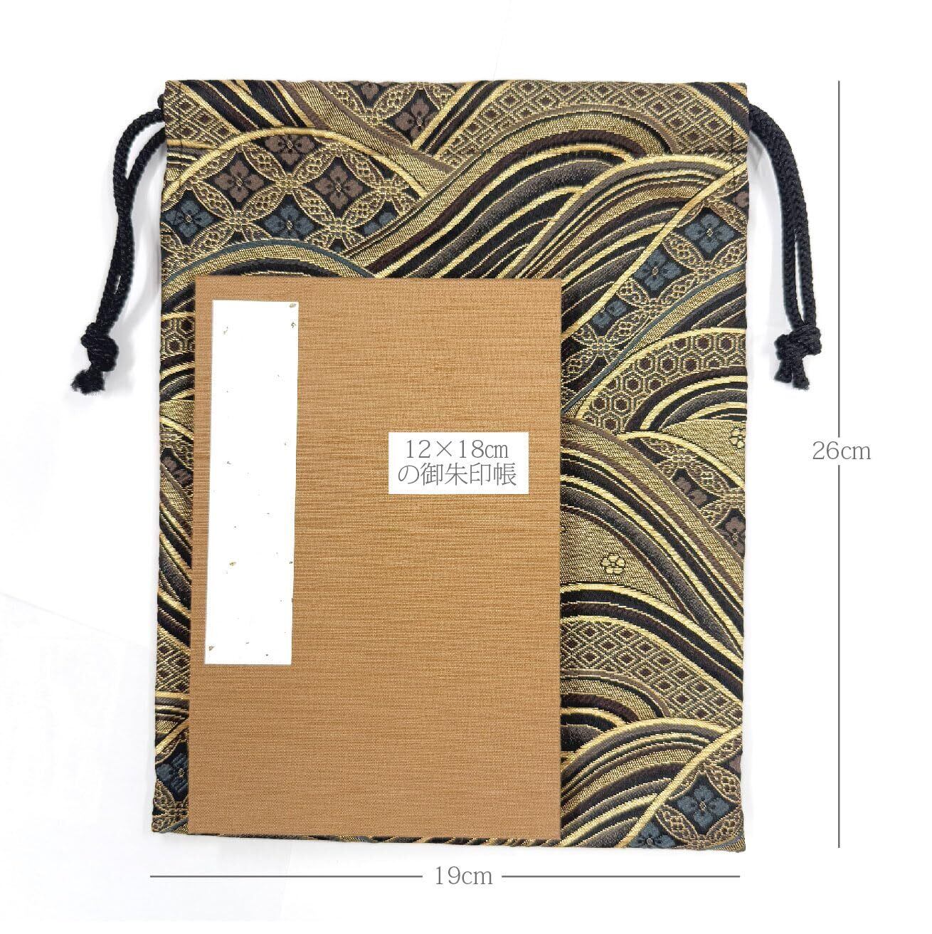 御朱印帳袋 【波 黒】 御朱印帳入れ 19×26㎝ 小物入れ 御朱印帳 袋 巾着 巾着袋 日本製 金襴 京都 金らん 西陣織