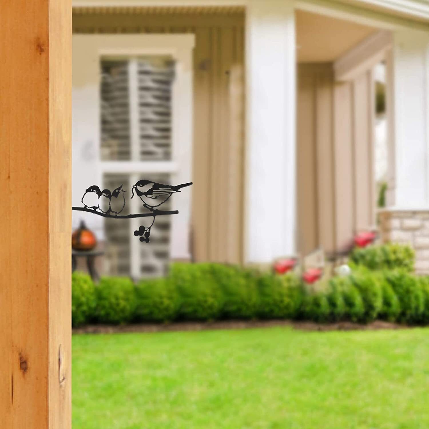 RemeeHi 妖精 welcome 地面に刺す ガーデニング ガーデンオブジェ ガーデン雑貨 プレート オブジェ アイアンプレート インテリア 庭 飾り 園芸 インテリア 北欧 (4羽の小鳥)