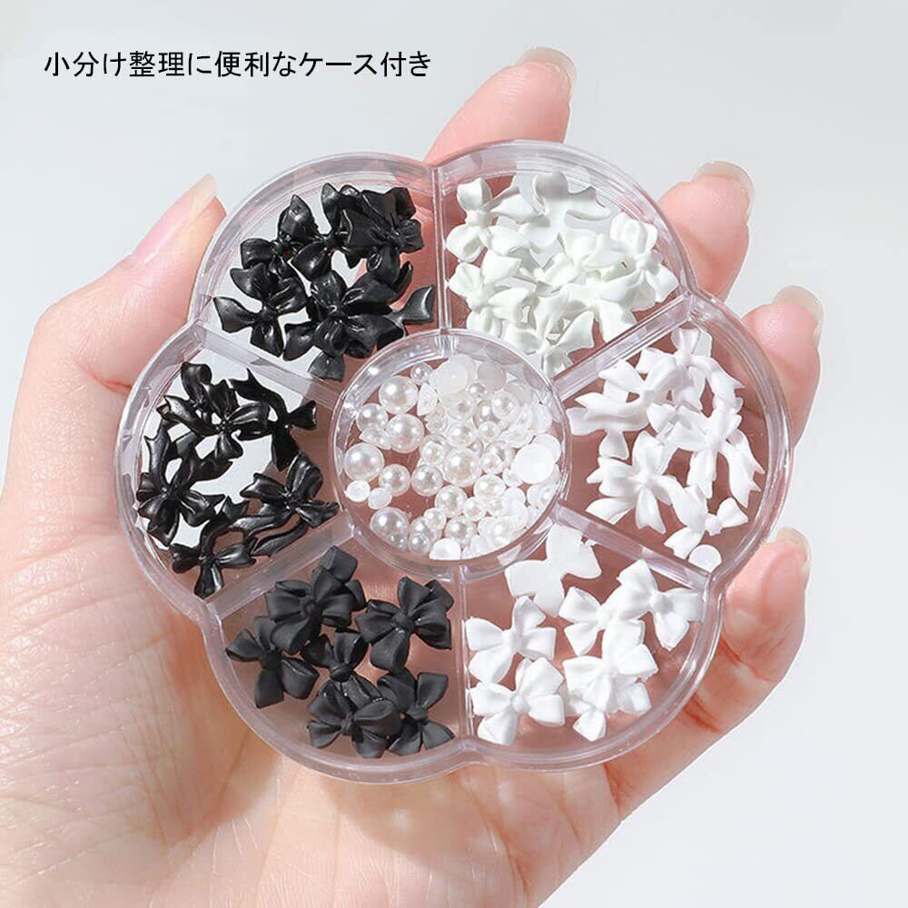 ネイルパーツ 3D 立体 蝶結び 黒白リボン レジン用 ネイル装飾 DIY ジュエリーパーツ ハンドメイド 手作り デコパーツ