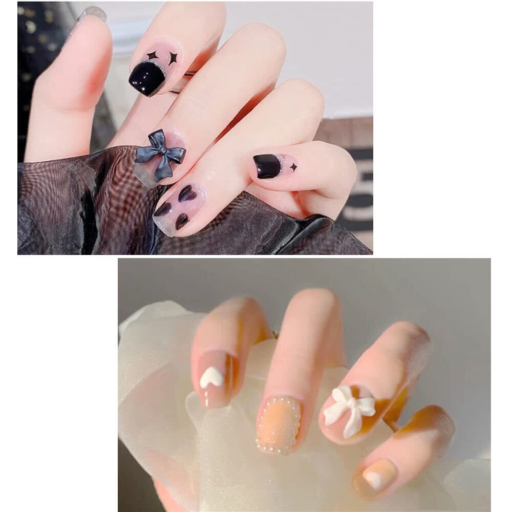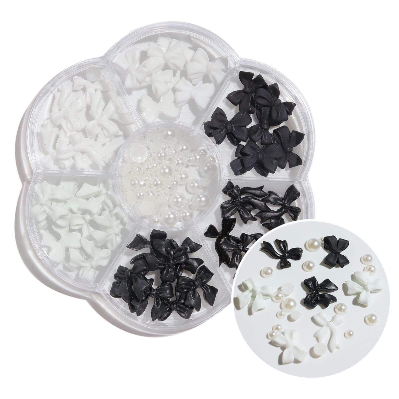【可愛い形のデザイン】可愛いお洒落なリボンパーツ。定番の黒と白が3種類ずつ入っています。立体感があるリボンをネイルにのせるだけで存在感抜群のネイルが完成。