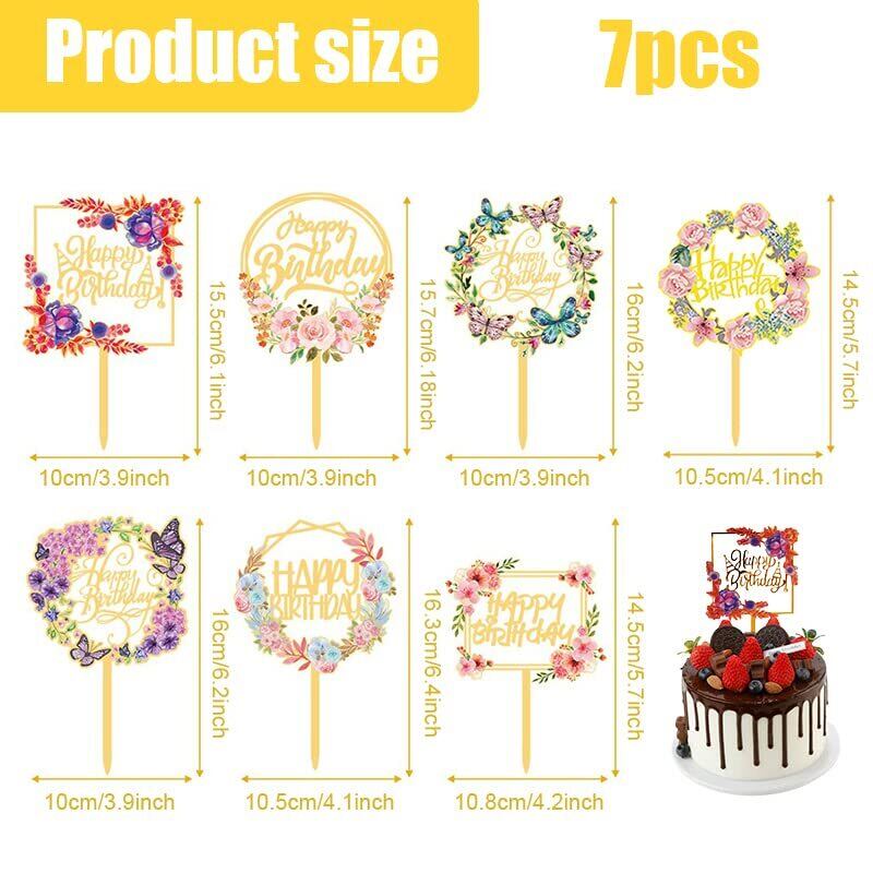 【新着商品】ケーキトッパー 誕生日 7点セット Happy Birthday ケーキトッパー ゴールド 誕生日 ケーキ飾り お花 蝶々 ケーキ挿入カード ケーキデコレーション バースデー パーティー 母の日 (金 7点) | gsmshop