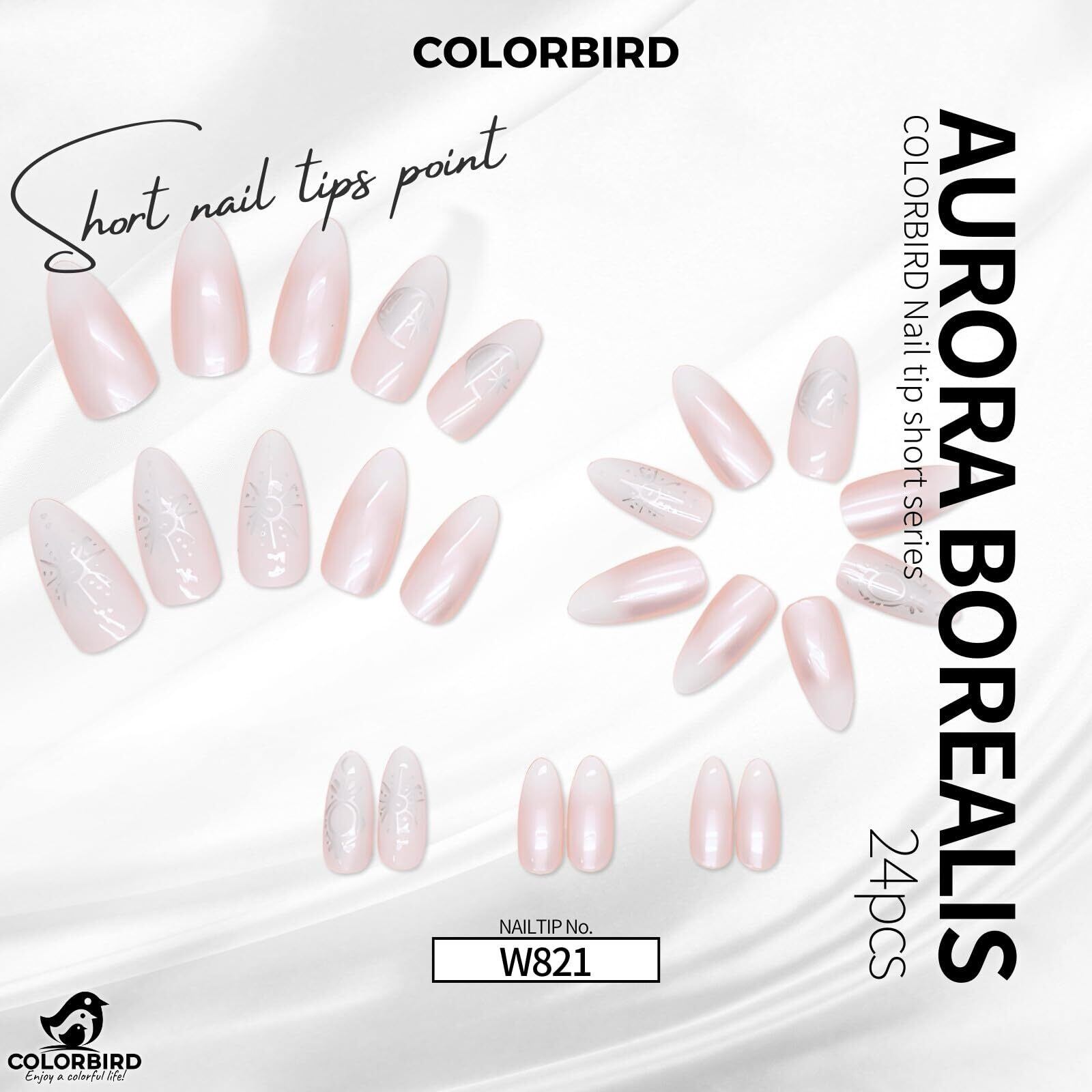 COLORBIRD ネイルチップ ショート 24枚 ピンク 白 ネイル 付け爪 チップ 短め 可愛い ポイント (W821)