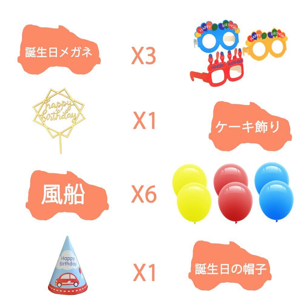 【パーティー セット内容 】Happy Birthdayバースデーバナー1個、交通バナー1個、救急車アルミ風船1個、パトカーアルミ風船1個、スクールバスアルミ風船1個、消防車アルミ風船1個、工程車アルミ風船1個、飛行機アルミ風船1個、「2」の箔風船1個、クラウンアルミ風船1個、三角帽子1個、車ステッカー2個、バースデーメガネ3個、【happy birthday] ケーキ飾り1個、風船6個。