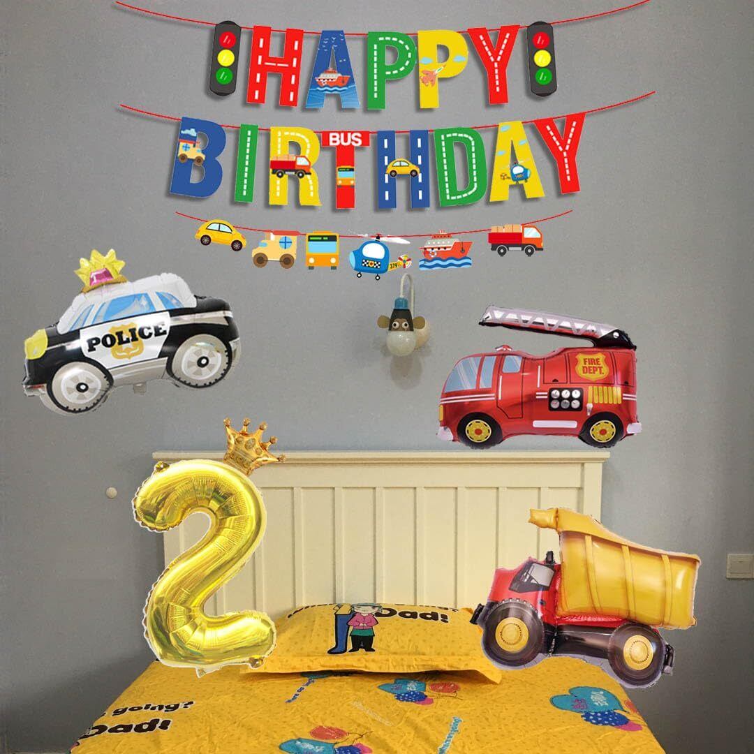 【特価セール】誕生日 車 飾り付け シンプル パーティー 数字2 セット 大きな 3D車バルーンセット Happy Birthdayバースデーバナー 交通バナー 救急車風船 パトカー風船 スクールバスアルミ風船 消防車風船 工程車風船 飛行機風船 クラウン風船 三角帽子 車ステッカー パーティー かわいい 女の子 男の子 誕生日 装飾 バースデー 飾り | gsmshop