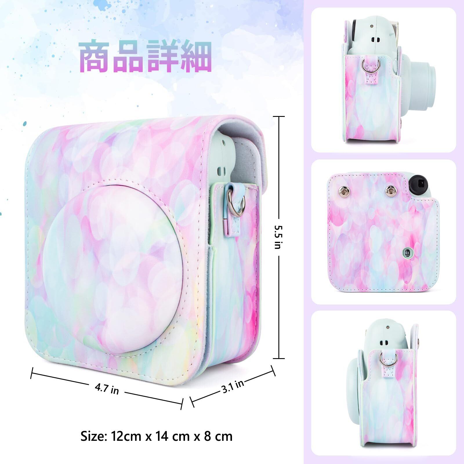 HIYQIN 「アーティストシリーズ」チェキケース instax mini 12ケース,Fujifilm チェキ12ケース チェキ mini 12カメラケース ショルダーストラップ付き PUレザー - アーティストMHPP