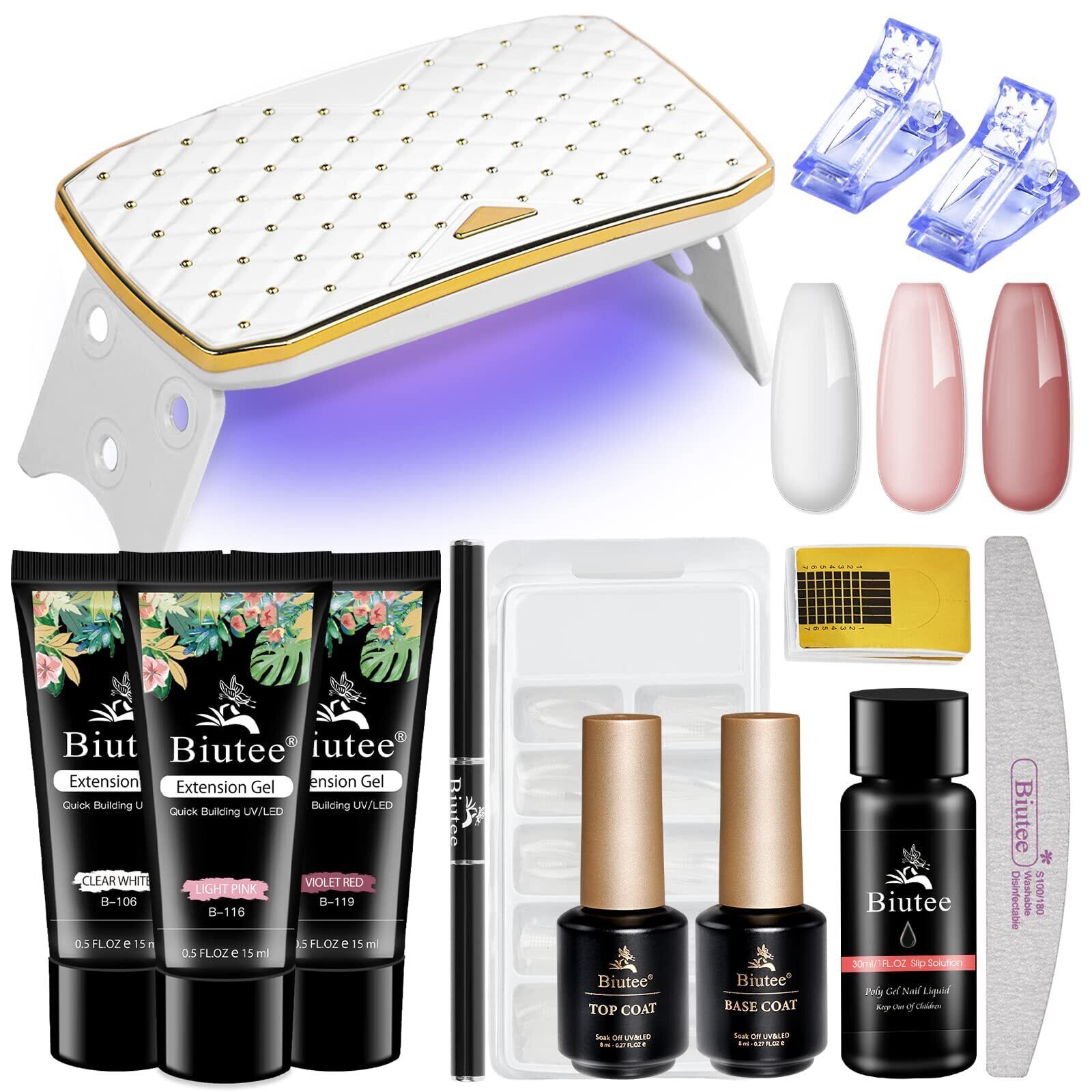 Biutee ポリネイルジェル ネイルジェル セット カラージェル ledライト付き 3色ネイルジェル トップコート ベースコート スリップ ソリューション