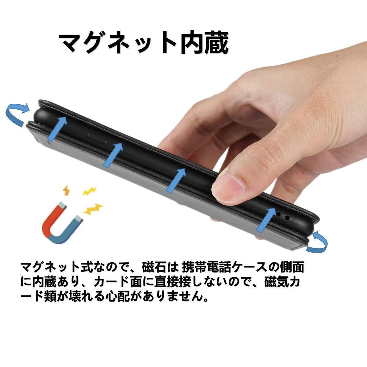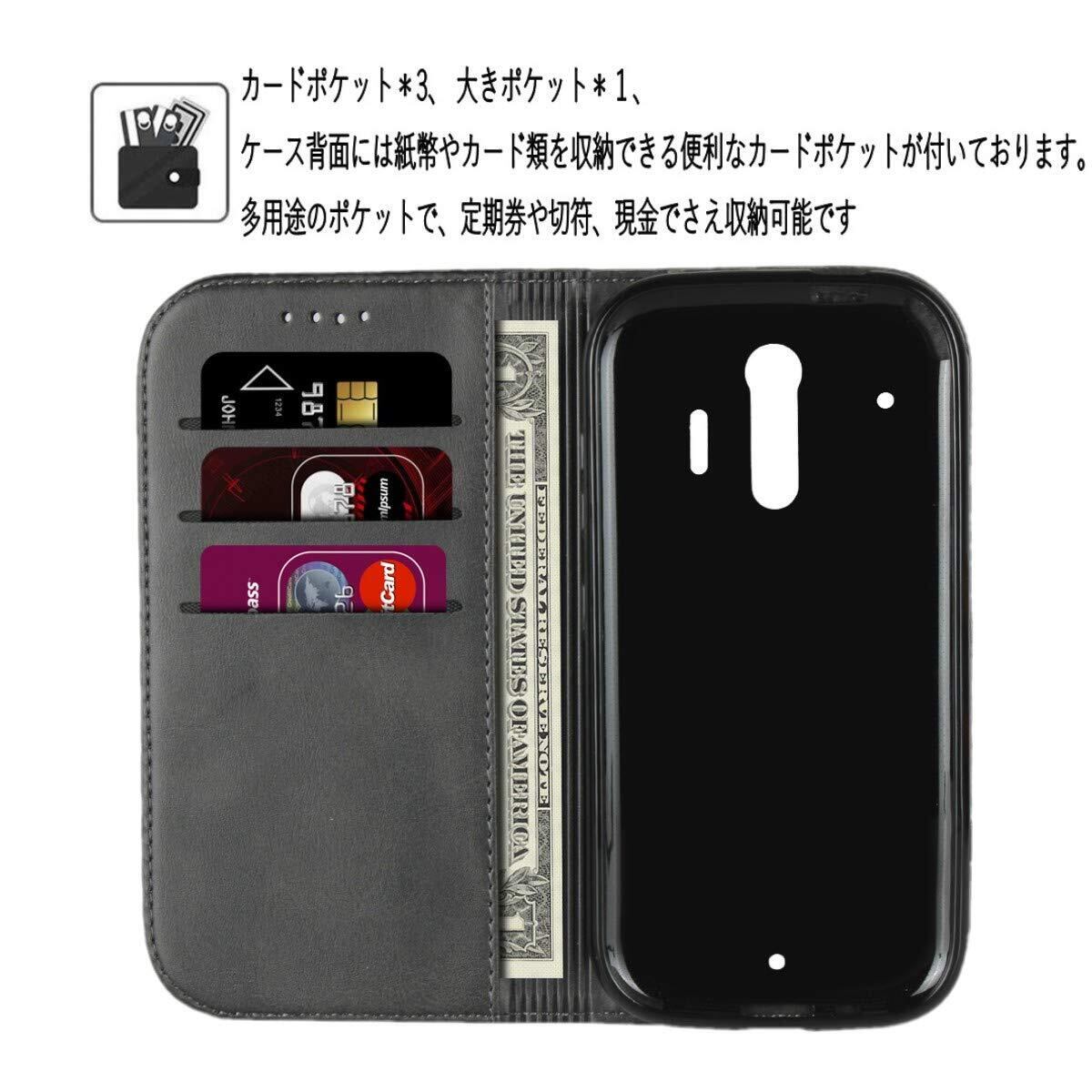 【便利なスタンド機能・カードポケット付き】横置きスタンド機能があり、手に持たず机に置いて好きな角度で動画鑑賞や自撮りなどを楽しめます。 内側には3つのカード入れポケットが付きの財布型本革ケースで、クレジットカードや、お札、名刺や定期券などの収納に便利です。※快適にご利用頂くには、内側に入れるカードは3枚までをお勧めします。