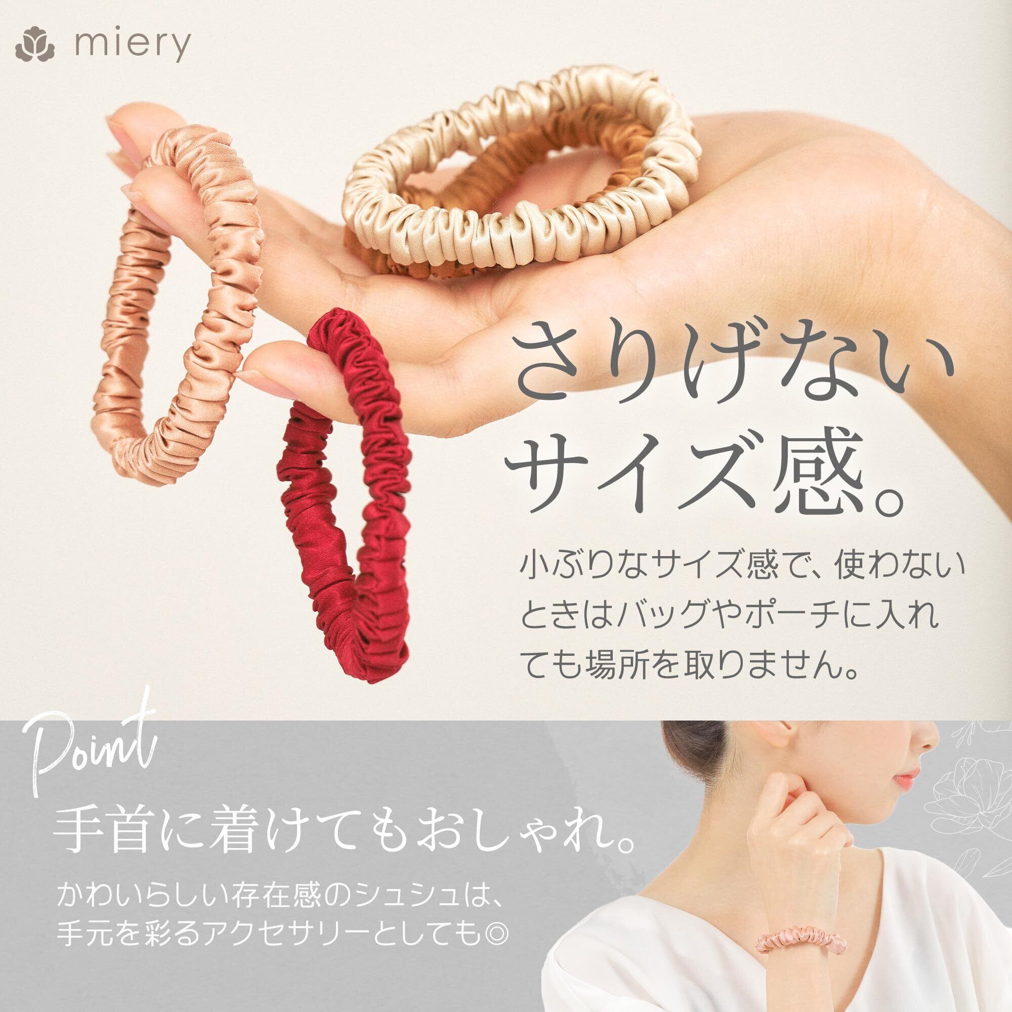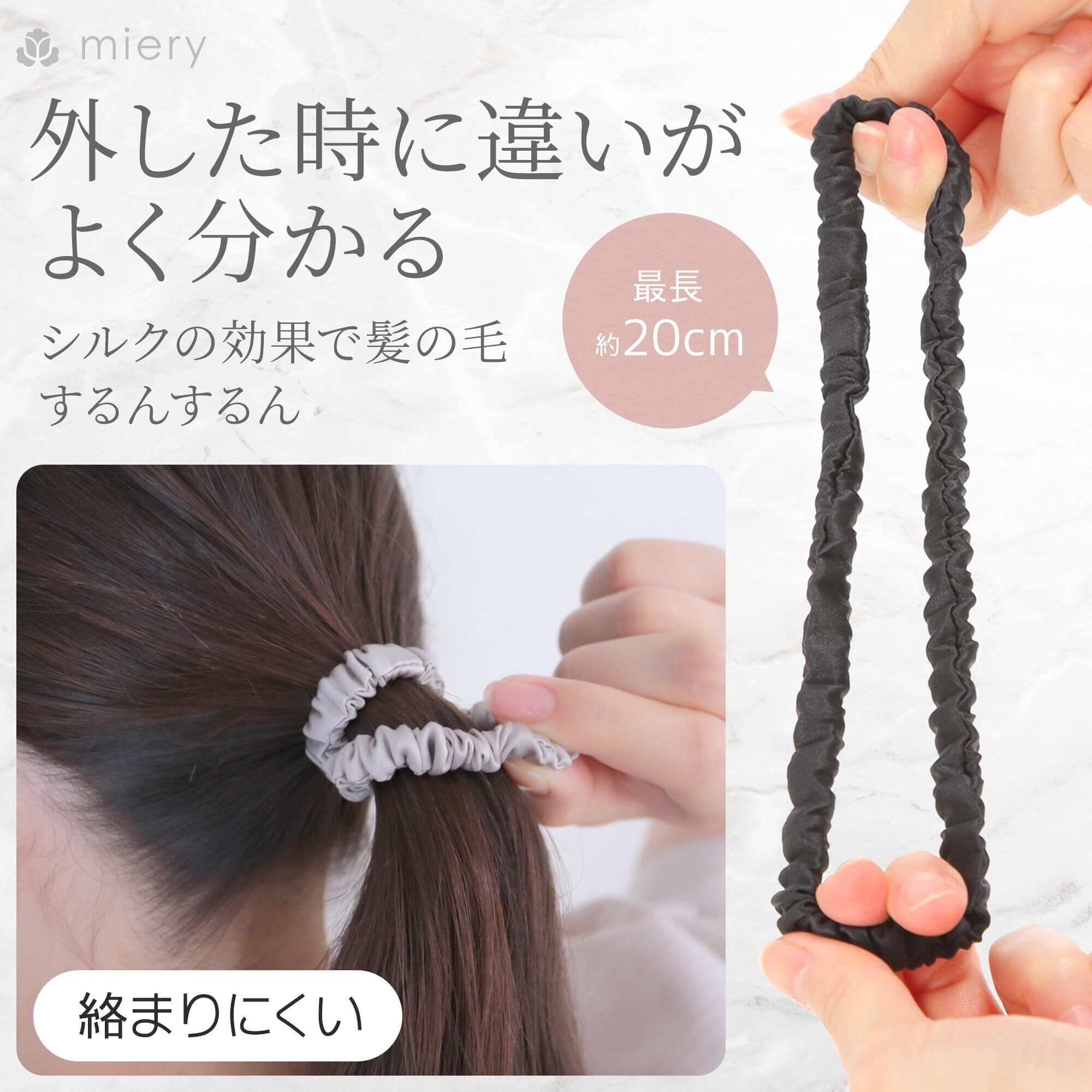 【商品仕様】○サイズ:直径7cm/幅1cm ○カラー:ブラック/グレー/ネイビー/ブラウン/カーキ/ピンク ○セット内容:単色3個セット/アソートA(ブラック/グレー/ネイビー)/アソートB(ブラウン/カーキ/ピンク) ○素材:19匁天然シルク100% ○ブランド:miery