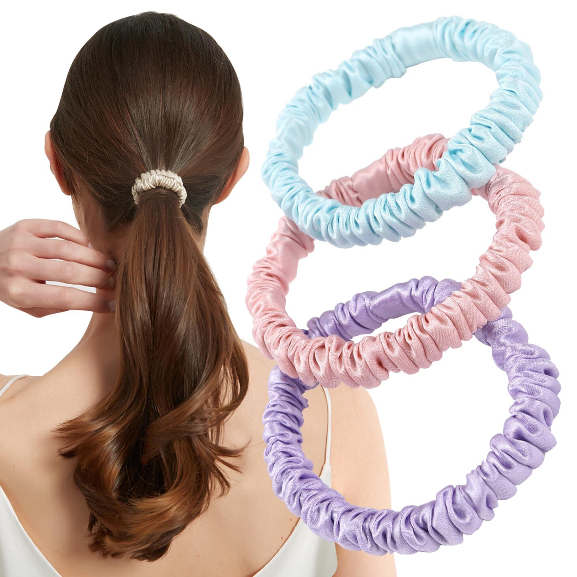 ヘアゴム シュシュ シルク 100% 髪ゴム 【美容のプロ推薦】 『髪に優しくダメージ軽減』 3個セット 大人 おしゃれ (アソートE【パステル】)