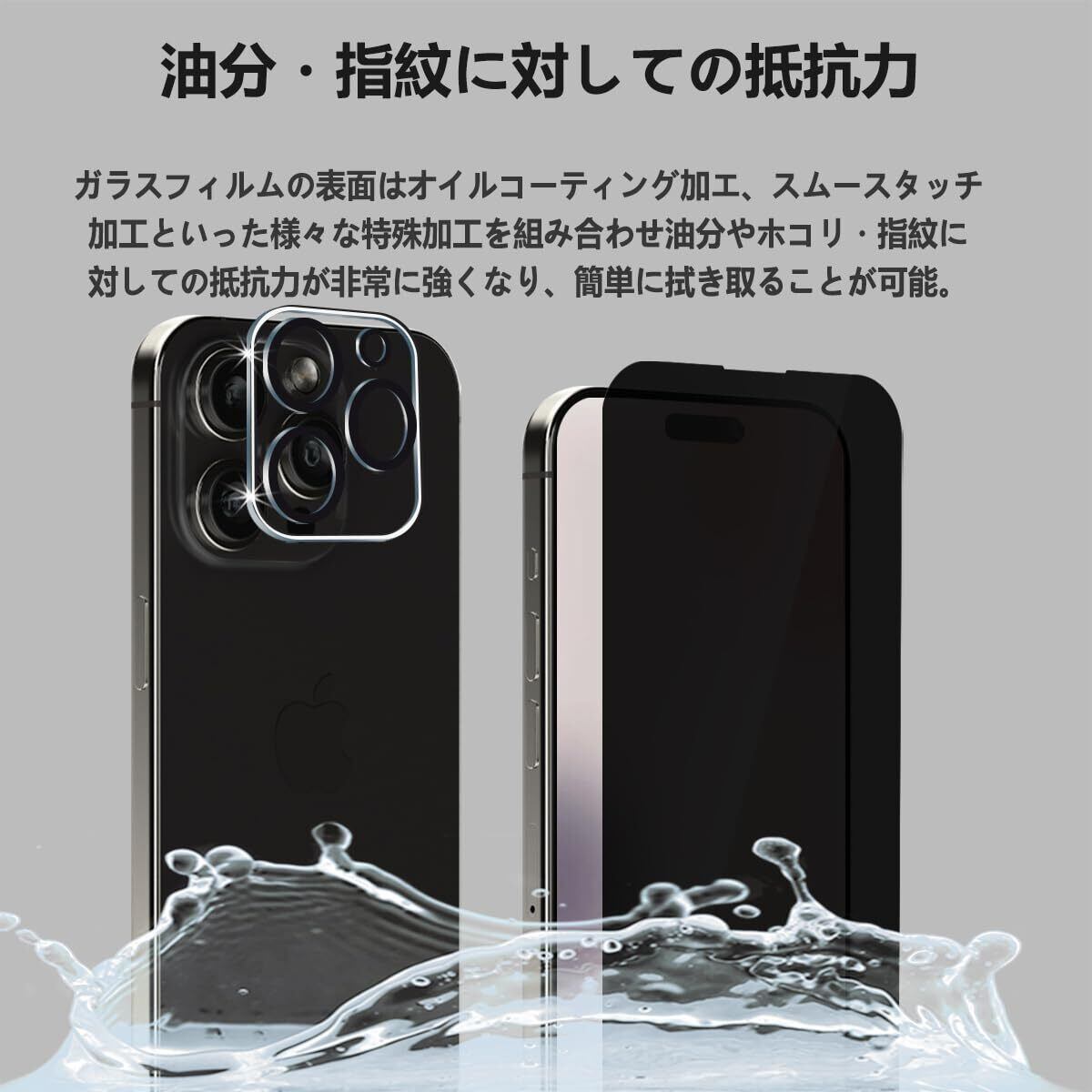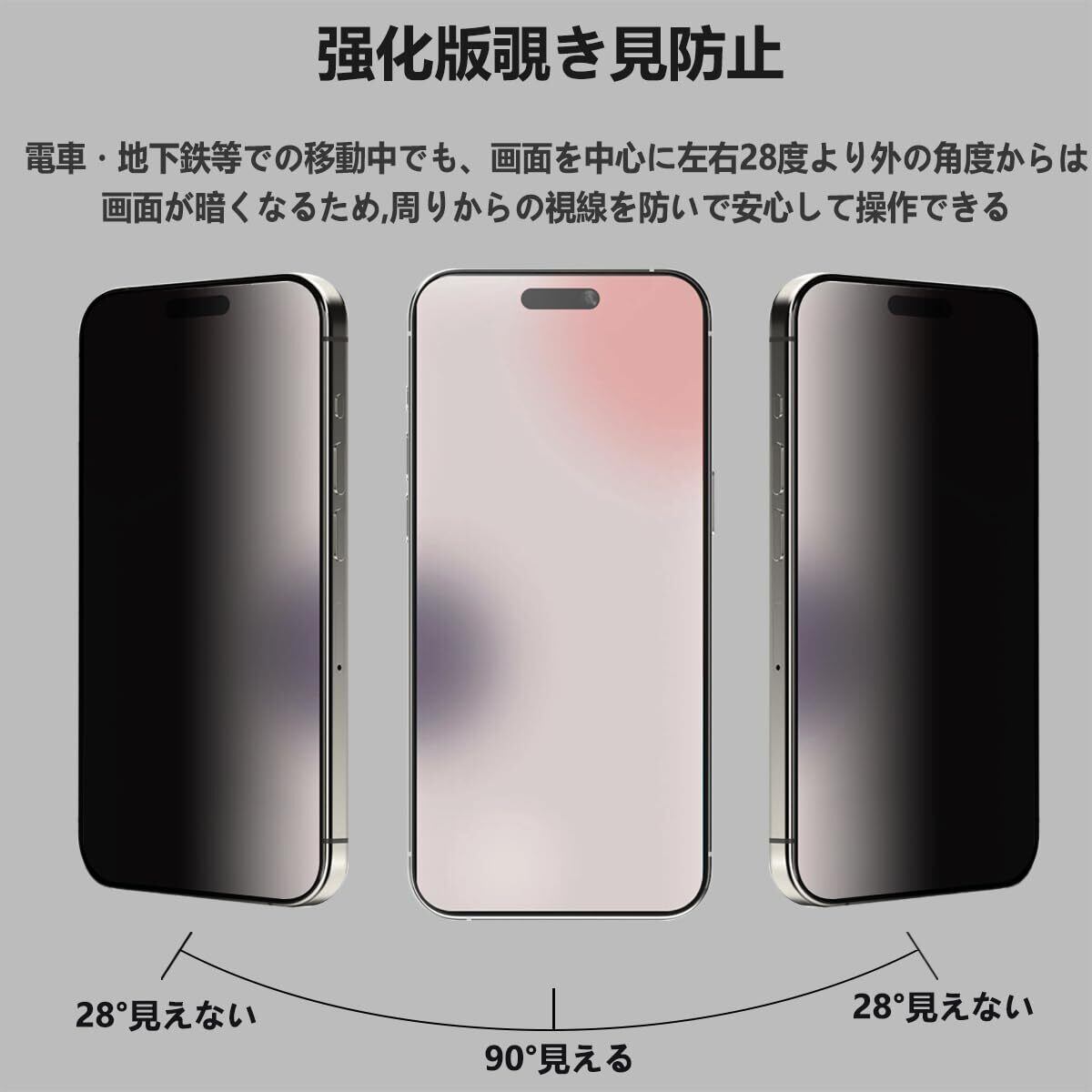 ◆【対応機種】iPhone 15 Pro Max 対応。iPhone 15 Pro Max ガラスフィルム 覗き見防止 1枚+カメラフィルム(2枚入)。