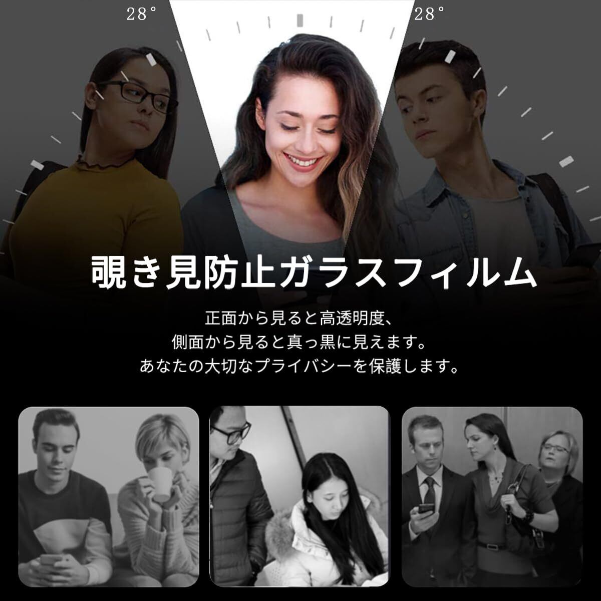 ◆【覗き見防止】先端のマイクロルーバー工学技術を採用して、画面の正面「左右」180°の視野角で認定され、真正面からのみはっきり見えますので、あなたのプライバシーをしっかりと守り、電車や公共の場などの人が多い所でも安心します。 ご注意:覗き見防止加工の特性上、画面輝度が多少下がることがありますので、気になる方はデバイスの画面輝度を上げることを勧めます。