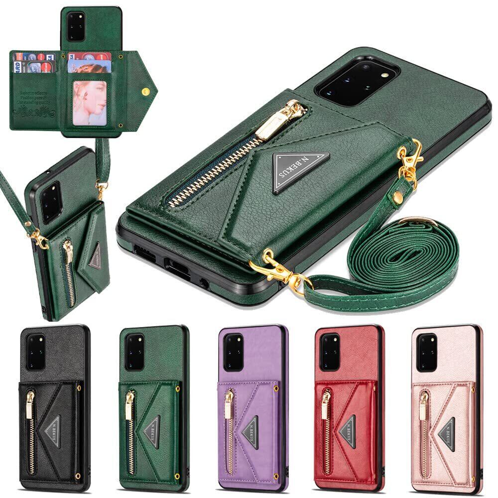 Galaxy S20 5G ケース ショルダー クロスボディ手帳型 Samsung S20 5G 縄掛けカバー 手帳 サムスン ギャラクシー SC-51A SCG01 ケース CASE 長ストラップ 肩がけ 首掛け 斜め掛け チェーン ファスナー型 携帯カバー 5色 グリーン