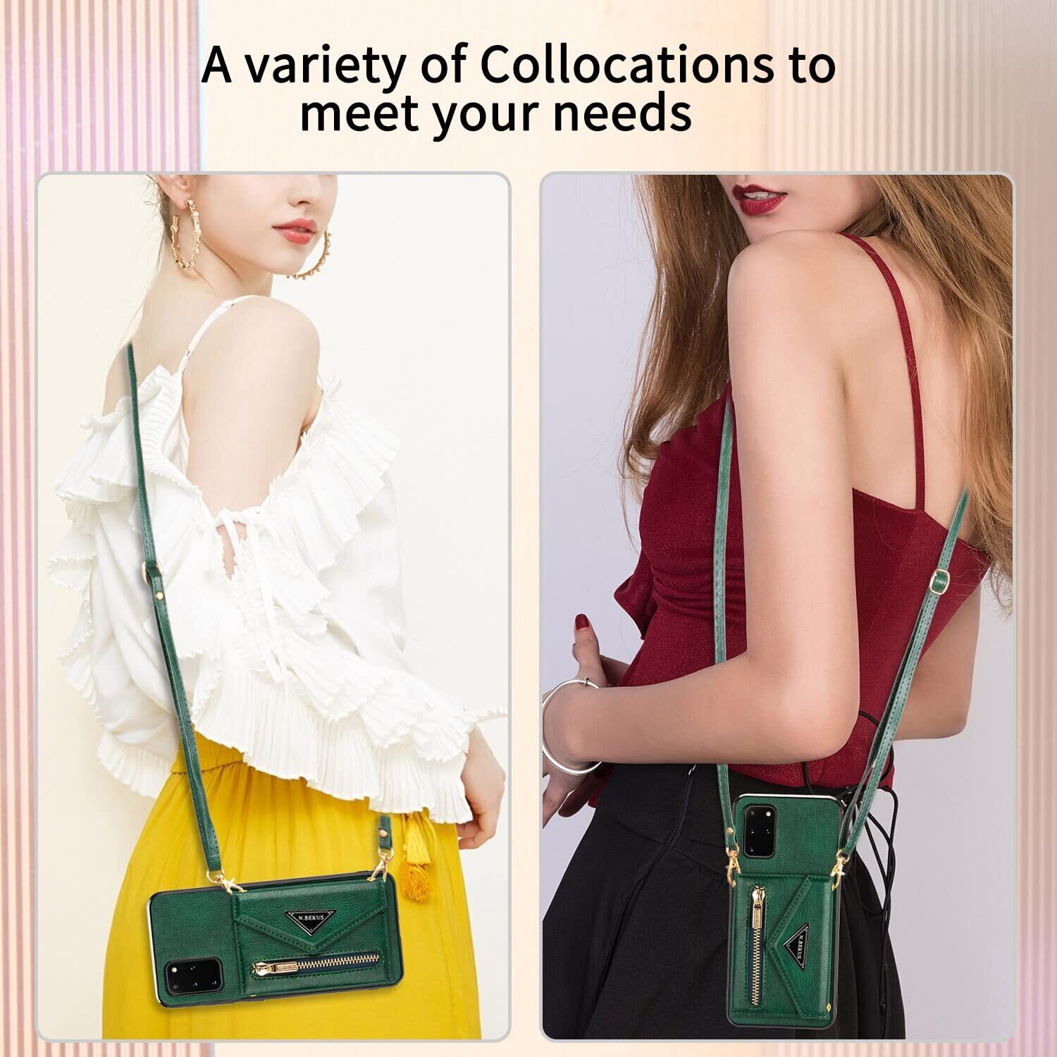Eastwave Galaxy S20 5G ケース ショルダー クロスボディ手帳型 Samsung S20 5G 縄掛けカバー 手帳 サムスン ギャラクシー SC-51A SCG01 ケース CASE 長ストラップ 肩がけ 首掛け 斜め掛け チェーン ファスナー型 携帯カバー 5色 グリーン