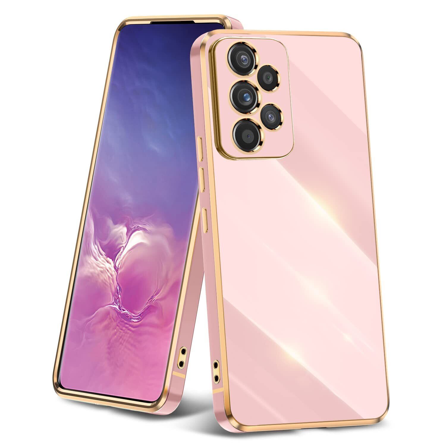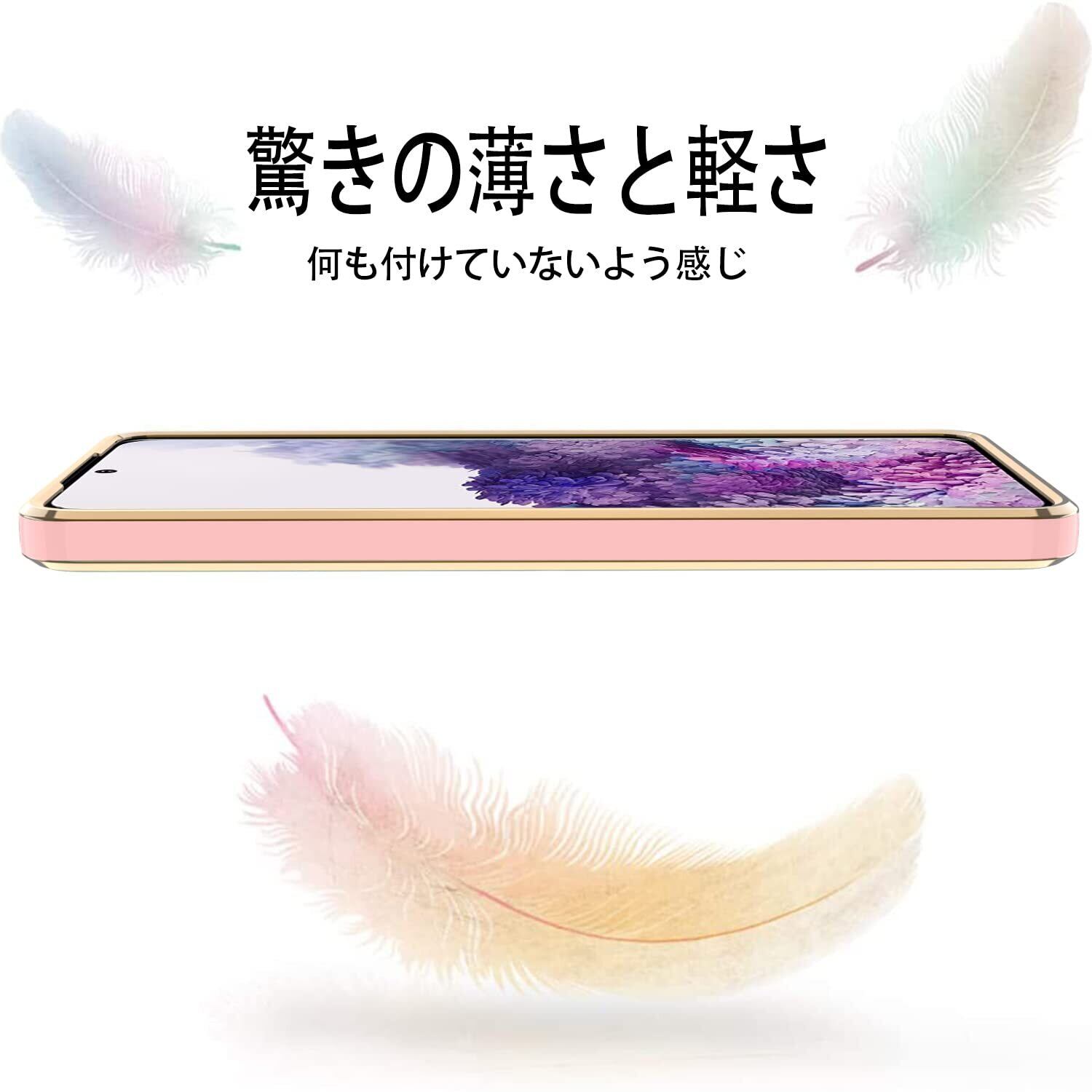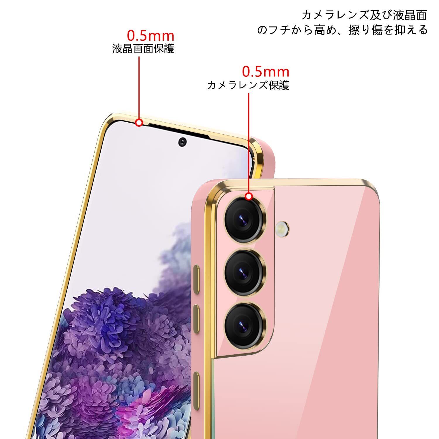【2022最新】Galaxy A53 用ケース クリア 耐衝撃 TPU ケース レンズ保護 ソフトケース 透明 メッキ加工 ワイヤレス充電 ギャラクシーA53 用カバー ラップホール付き 薄型 軽量 メッキ枠 ピンク/ゴールド JP2-8 | gsmshop