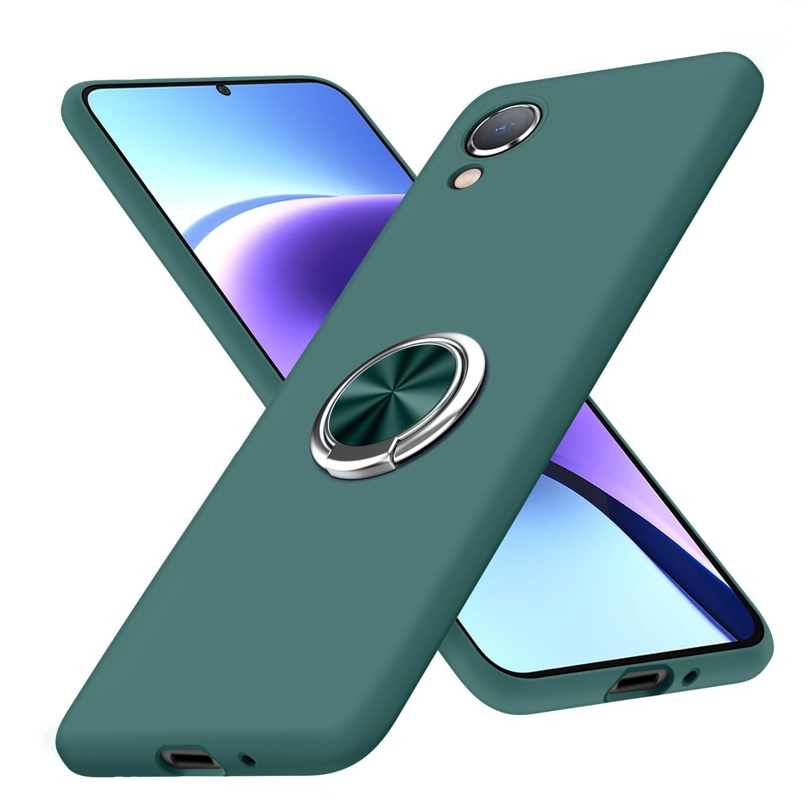 AQUOS Sense2 ケース tpu リング付き シリコン保護ケース スリム磨り表面 指紋防止カバー スマホケース SHV43 SH-01L SH-M08 ケース 柔軟 軽量 薄型 落下防止 滑り止め 黄ばみなし ワイヤレス充電対応 ストラップホール付き 人気 耐衝撃カバー ダークグリーン AYS-23-69